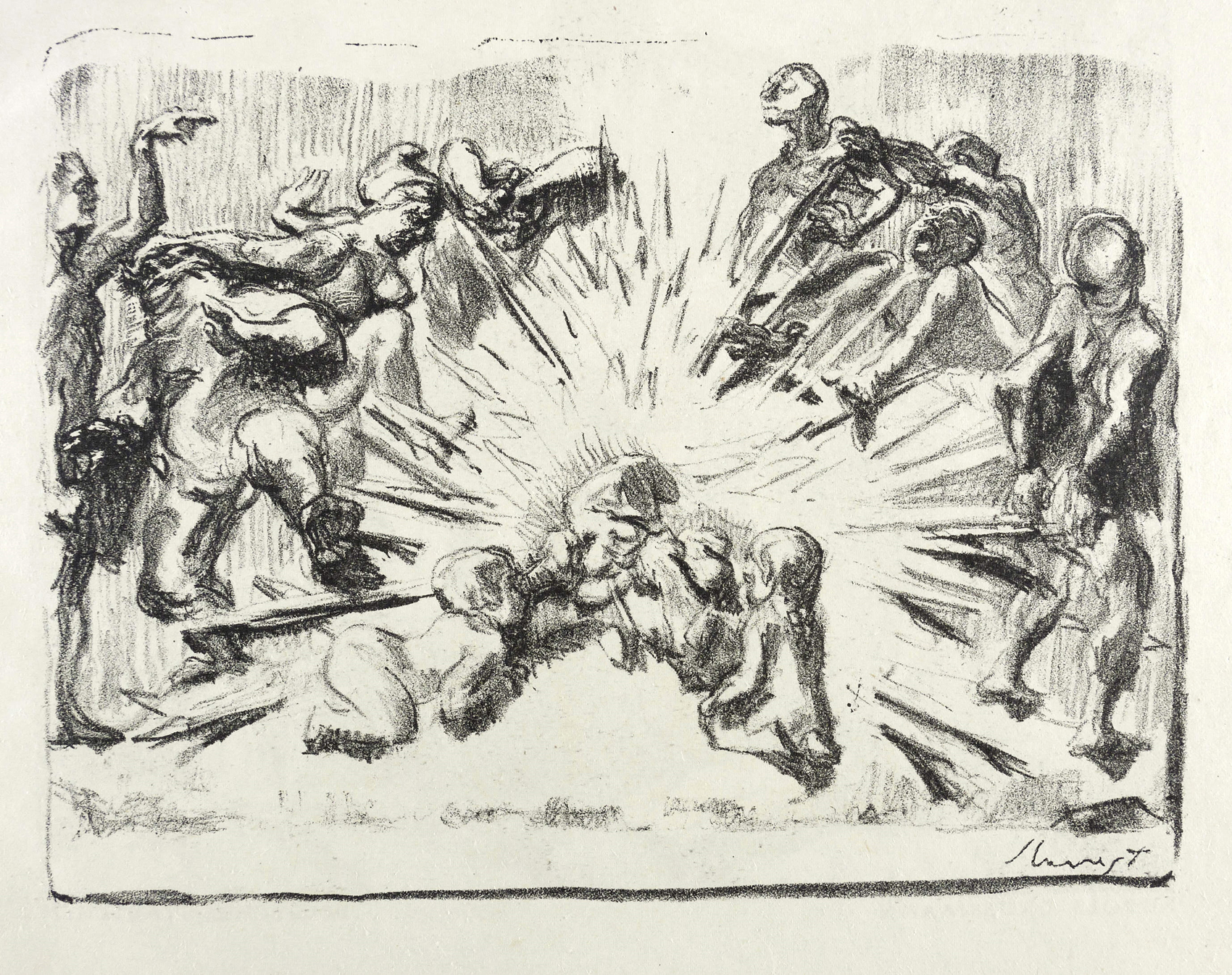 1916. Lithografie / Kreidelithografie, in Schwarz, auf hellgelbem Werkdruckpapier. – Originale Künstlergrafik, von Max Slevogt. – 16,4 x 21,8 cm (Darstellung / Druckbild), 25 x 27 cm (Blatt).
