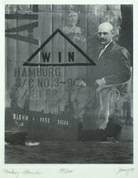 Rechts unter der Platte in Bleistift signiert und datiert, links betitelt und mittig mit eigenhändiger Auflagenbezeichnung versehen. – Montage fotografischer Aufnahmen eines Paares, des Hamburger Hafens mit Schiffen und typografischen Kompositionen. – Papier leicht gebräunt. Sonst sehr schön erhalten.