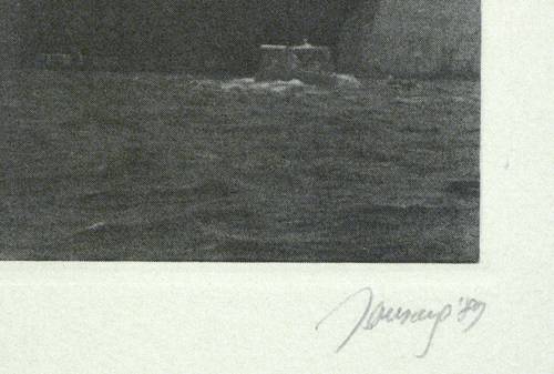 1989. Radierung / Fotomontage, in Schwarz, auf hellgelbem Velinkarton. – Originale Künstlergrafik, von Joachim Jansong. – Auflage Exemplar Nr. 173/200. – 24,2 x 19,6 cm (Darstellung), 25,1 x 20,5 cm (Platte), 35,5 x 36 cm (Blatt).
