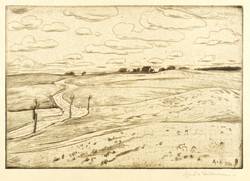 1900. Radierung / Strichätzung & Kaltnadel, in Schwarz, auf leichtem Simili-Japan. – Originale Künstlergrafik, von Hans Richard von Volkmann. – 17,8 x 25,8 cm (Darstellung / Platte), 28 x 38 cm (Blatt).