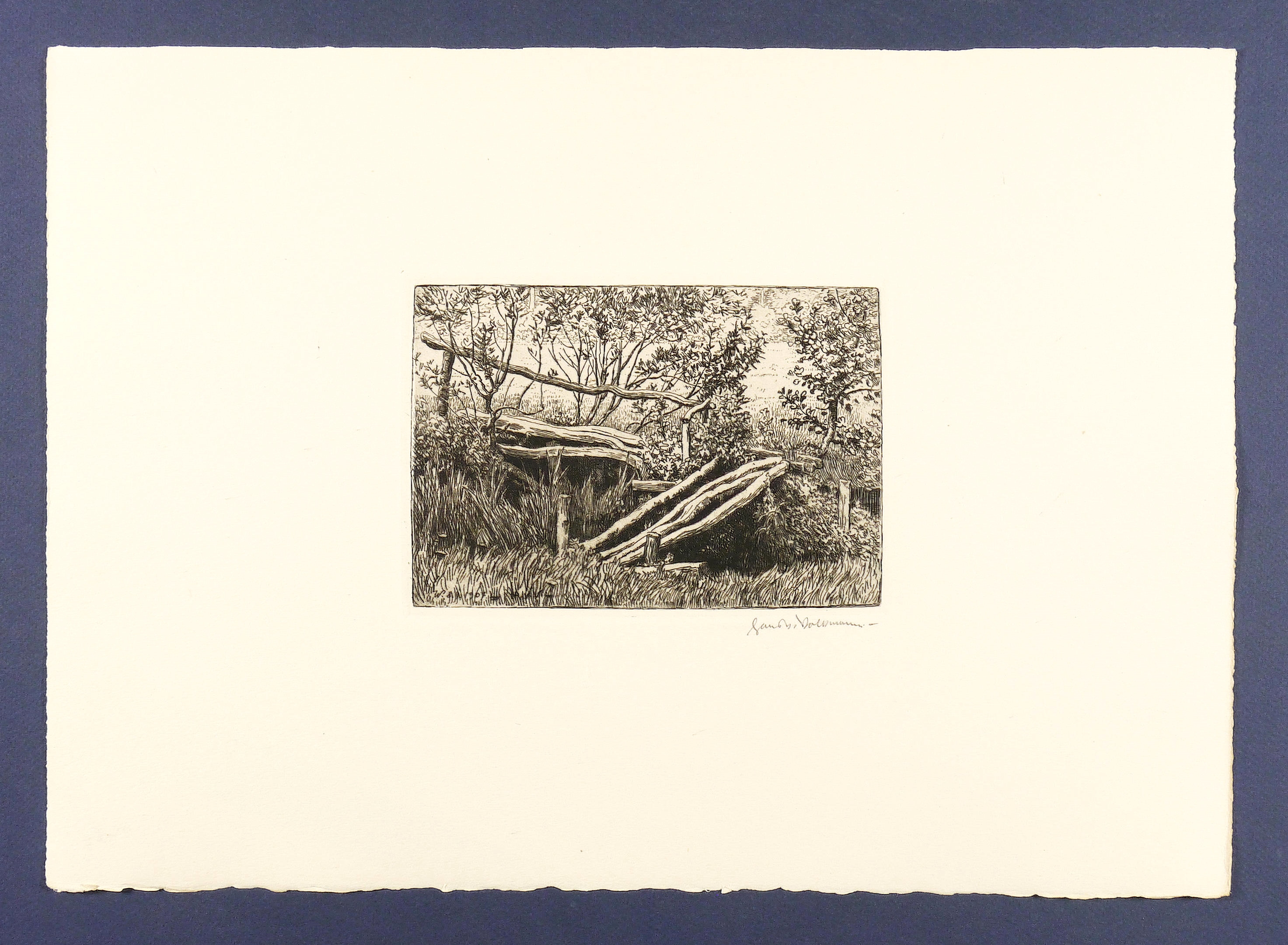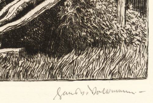 1907. Radierung / Strichätzung & Kaltnadel, in Schwarz, auf hellgelbem Kupferdruckbütten. – Originale Künstlergrafik, von Hans Richard von Volkmann. – 11,8 x 17,2 cm (Darstellung), 12,6 x 18,0 cm (Platte), 31 x 44 cm (Blatt).