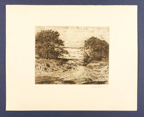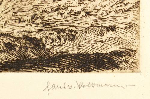 1909. Radierung / Strichätzung & Kaltnadel, in Schwarzbraun, auf gelblichem Kupferdruckkarton. – Originale Künstlergrafik, von Hans Richard von Volkmann. – 17,1 x 21,6 cm (Darstellung / Platte), 31 x 38 cm (Blatt).