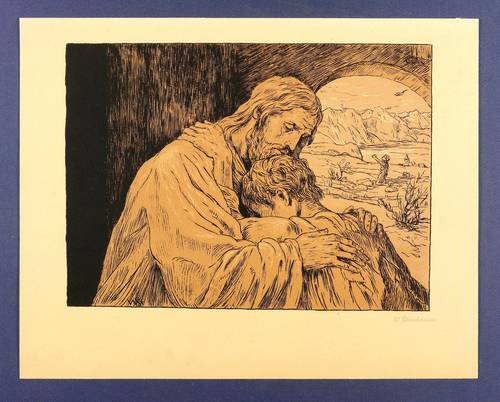 Wilhelm Steinhausen (1846 Sorau - 1924 Frankfurt/Main). Eigentlich Wilhelm August Theodor Steinhausen. Deutscher Maler und Grafiker. Studium an der Kunstakademie Berlin bei Eduard Daege, Eduard Holbein und Julius Schrader. 1866 Wechsel an die Kunstakademie Karlsruhe zu Ludwig Descoudres und Hans Canon. Nach dem Tod der Mutter 1870 Rückkehr nach Berlin. Zusammenarbeit mit Adrian Ludwig Richter in Loschwitz bei Dresden. 1871 Verleihung des Michael-Beer-Stipendium für Historienmalerei; längerer Studienaufenthalt in Italien. Ab 1873 als freischaffender Künstler in München. 1876 Bekanntschaft mit dem Maler Friedrich Geselschap und Umsiedlung nach Frankfurt. Über Hans Thoma Zugang zur Kronberger Malerkolonie. Im Mittelpunkt seines Werk stehen die monumentale Historienmalerei sowie die Ausstattung von Kirchen, Villen und Geschäftshäusern; daneben entstanden aber auch Porträt- und Landschaftsbilder sowie Grafik und Plastik.