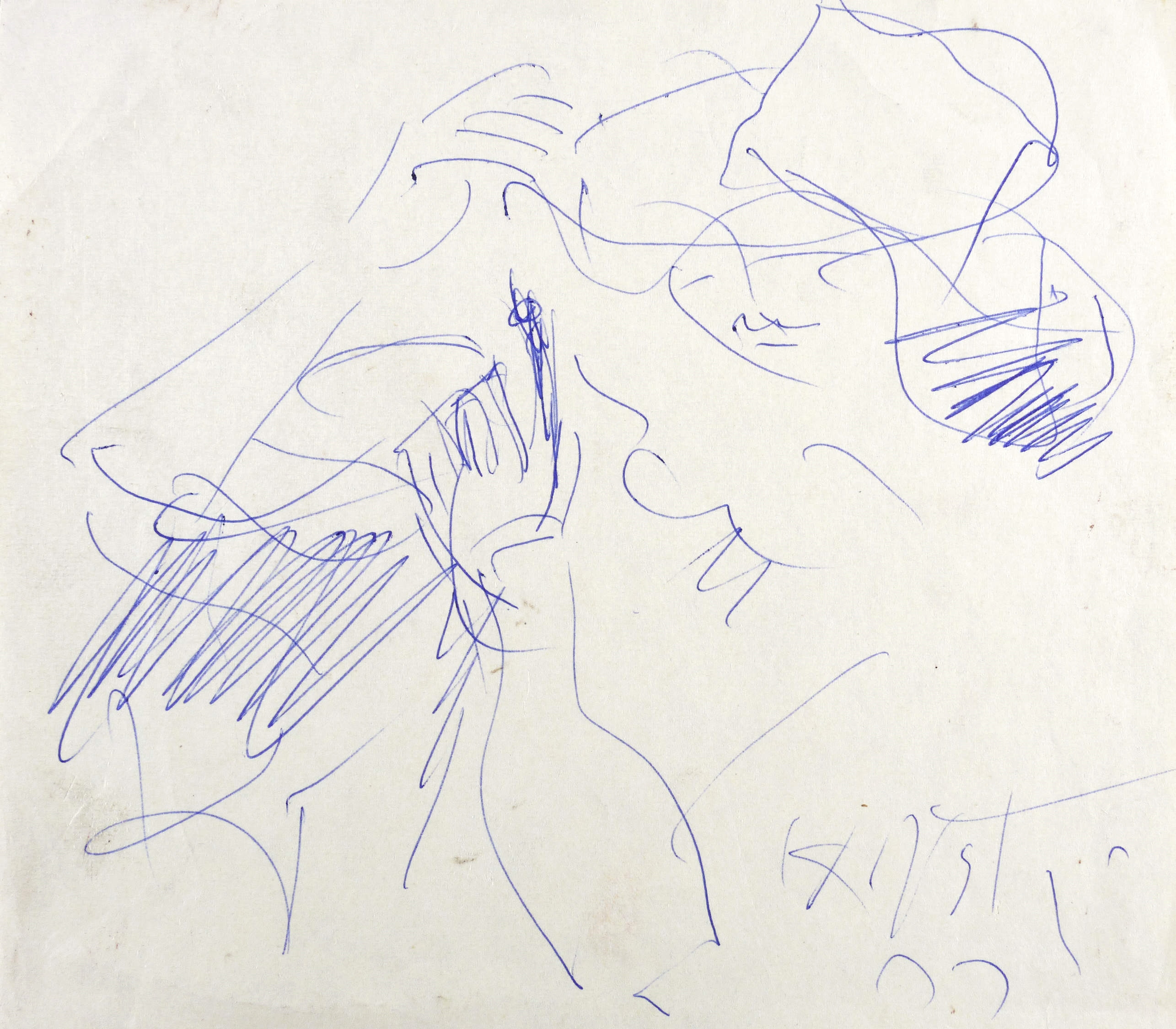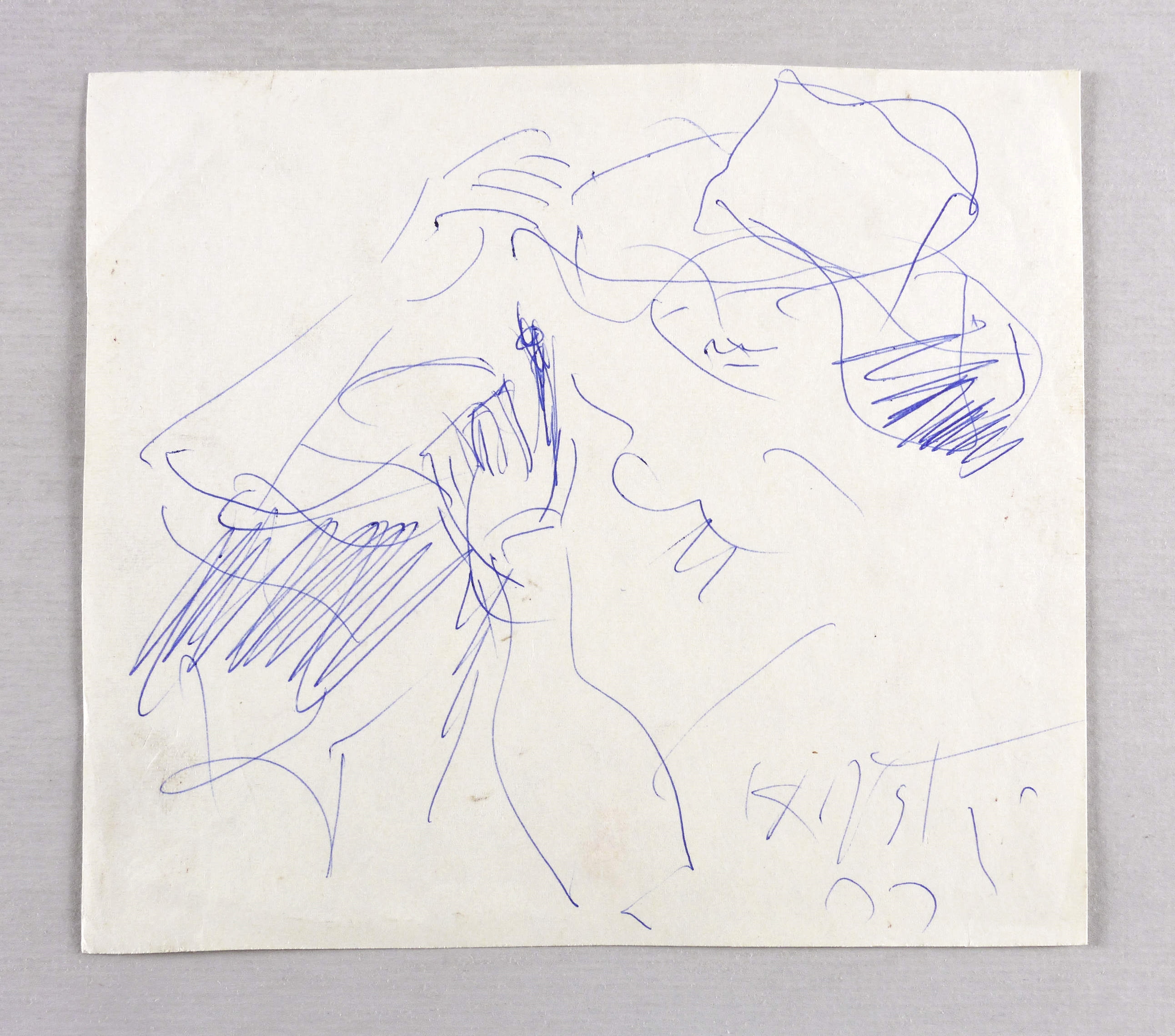 1980. Zeichnung / Kugelschreiber, in Blau, auf leichtem hellem Velin. – Originale Künstlergrafik, von Helmut Schmidt-Kirstein. – Unikat. – 17,8 x 20,0 cm (Darstellung / Blatt).