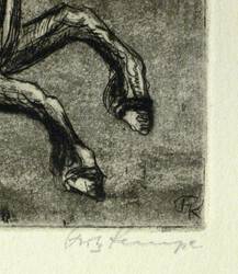 In der Platte monogrammiert unten rechts. Außerhalb der Platte in Bleistift signiert unten rechts. Weiter unten mittig nochmals monogrammiert und datiert. Am Blattrand rechts unten Stempel mit Künstlerinitialen, links in Bleistift bezeichnet ″2. Dr.″ – Minimal angeschmutzt. Verso Reste einer ehemaligen Montierung. Insgesamt gut erhalten.