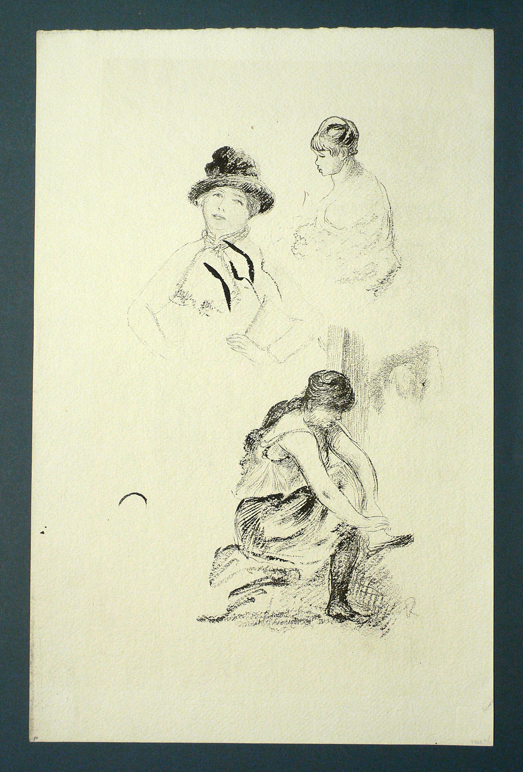 Aus: Auguste Renoir, Faksimiles nach Zeichnungen, Aquarellen und Pastellen. Drucke der Marées-Gesellschaft (München: Piper 1920). – Nicht handsigniert. Rechts unten monogrammiert: ″R″. Am Blattrand rechts unten Trockenstempel der Marées-Gesellschaft. – Aufwändig und qualitativ exzellent faksimilierte Handzeichnung des Künstlers. – Etwas lichtrandig. Sonst sehr schön erhalten.