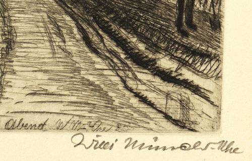 1925. Radierung / Strichätzung & Kaltnadel, in Schwarz, auf hellem Büttenkarton. – Originale Künstlergrafik, von Willi Münch-Khe. – 13,6 x 9,9 cm (Darstellung / Platte), 32 x 23 cm (Blatt).