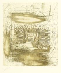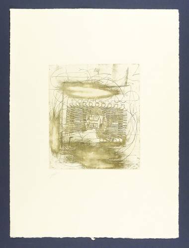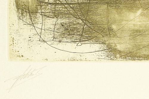 1987. Radierung / Strichätzung & Kaltnadel, mit Schmirgelton, in Schwarzgrün, auf Hahnemühle-Bütten. – Von Klaus Sobolewski. – 24,7 x 21,3 cm (Darstellung / Platte), 53,5 x 39,5 cm (Blatt).