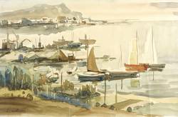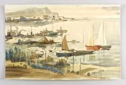 1950-1960. Aquarell, auf hellgelbem Velinkarton. – Originale Künstlergrafik, von Franz Deselaers. – Unikat. – 24,7 x 37,9 cm (Darstellung / Blatt).