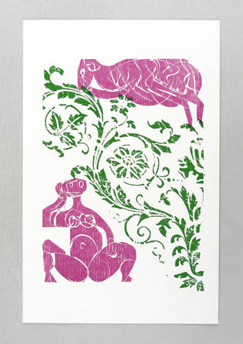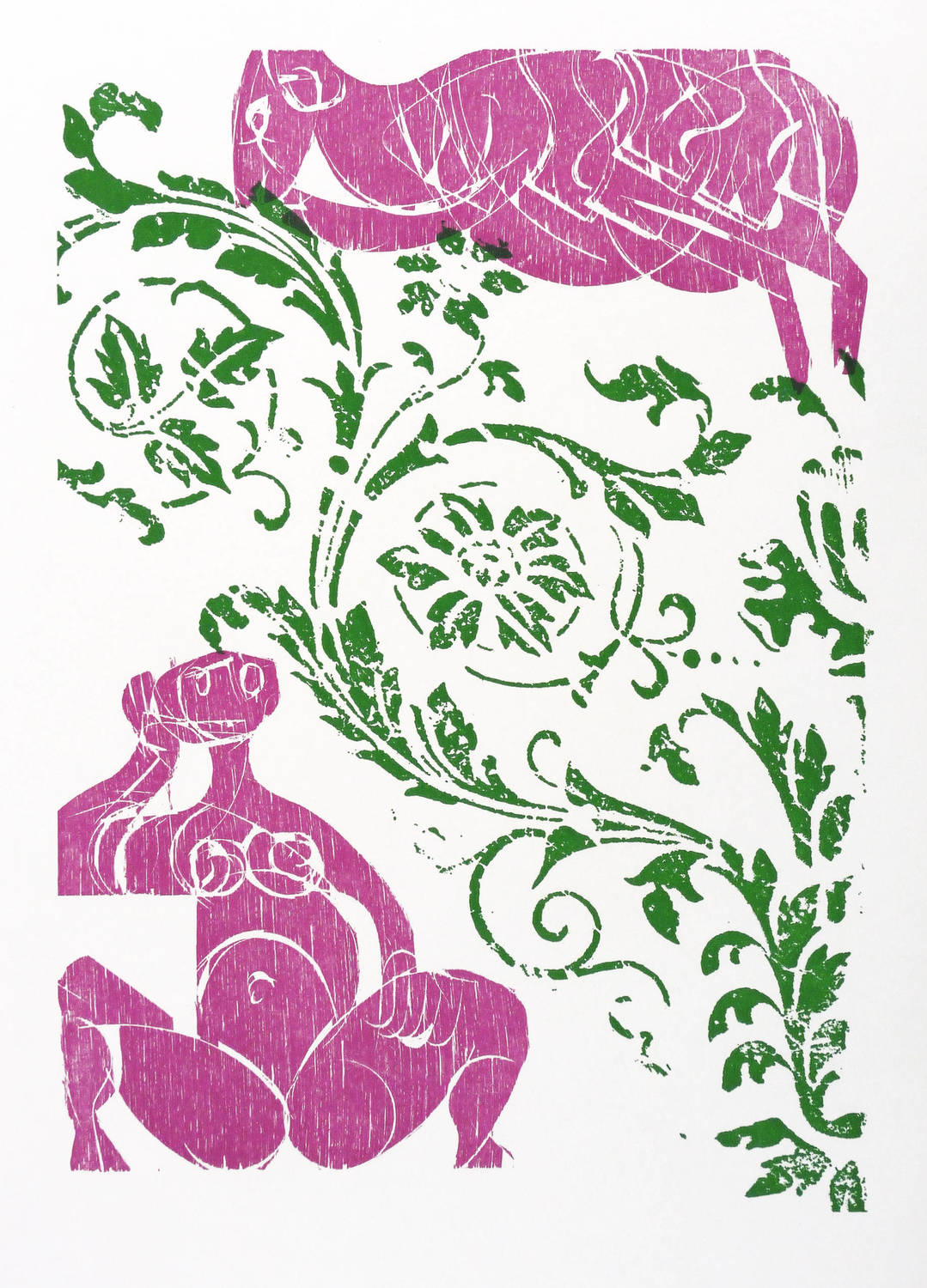 1969. Farbholzschnitt, in Violett & Grün, auf hellchamois Werkdruck. – Originale Künstlergrafik, von HAP Grieshaber. – Auflage 3000 Exemplare. – 39 x 25 cm (Blatt), 28,0 x 20,2 cm (Darstellung / Druckbild).