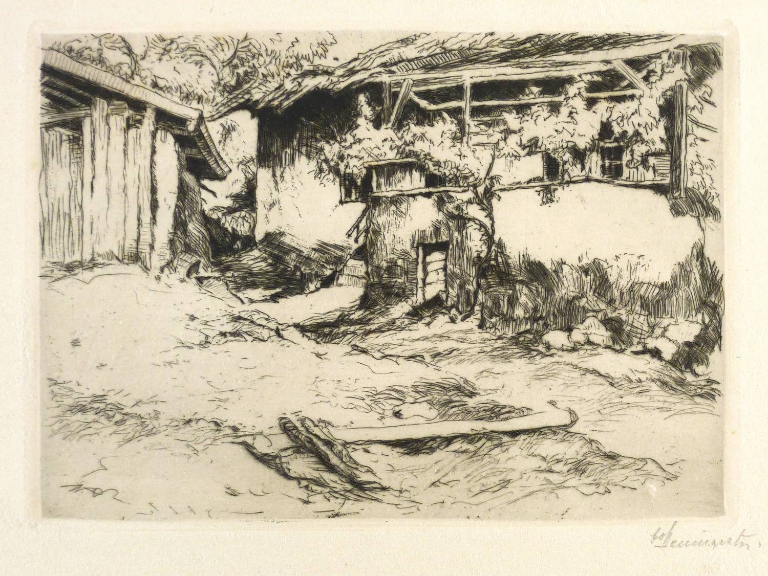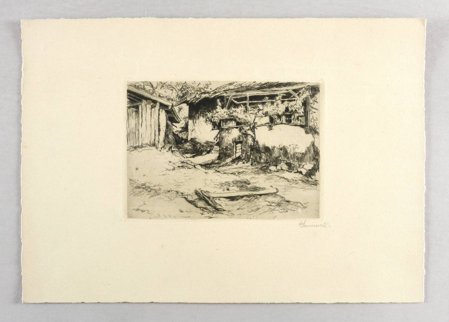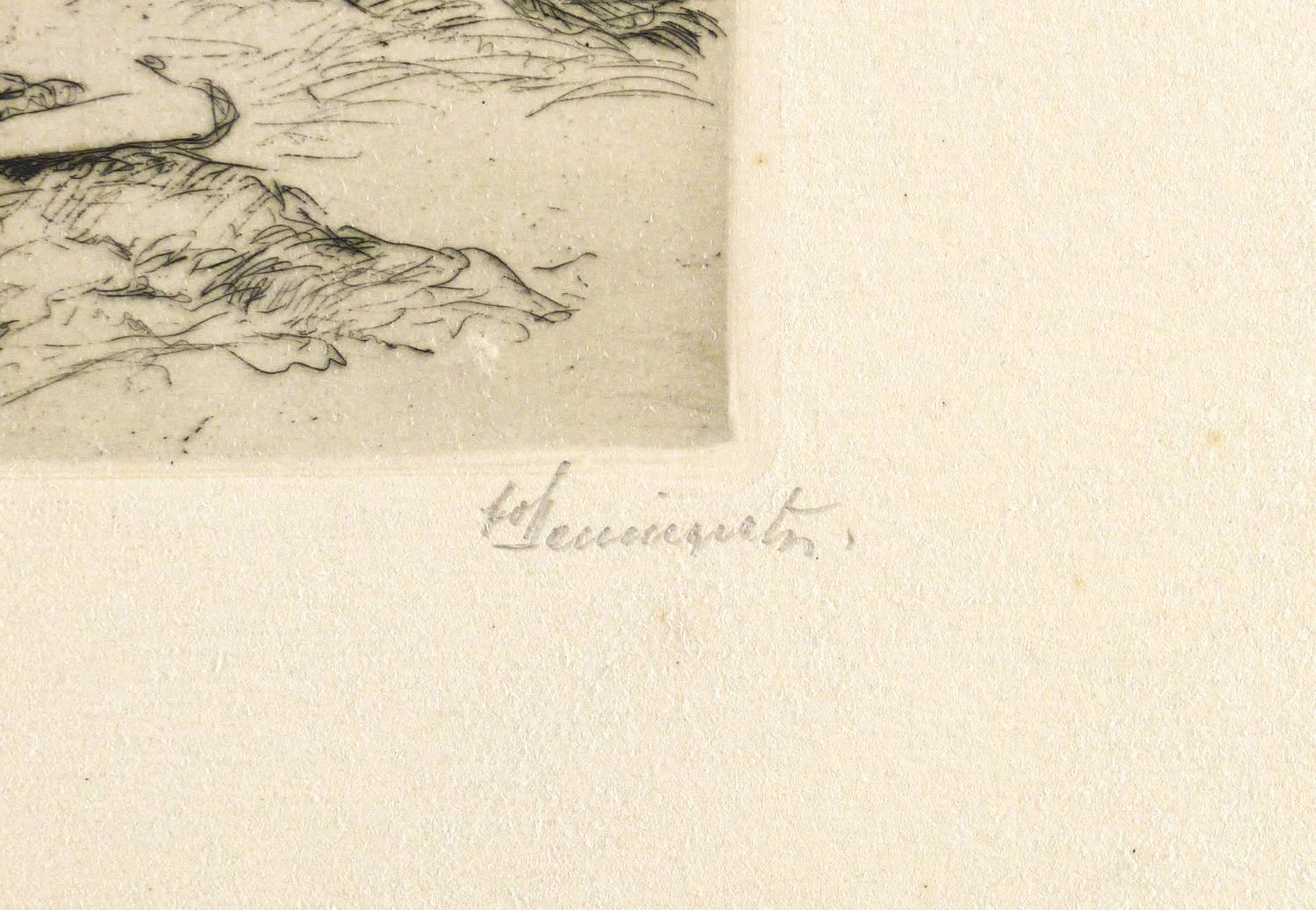 Um 1910. Radierung / Strichätzung, in Schwarz, mit Plattenton, auf hellchamois Kupferdruck. – Originale Künstlergrafik, von Fritz von Hellingrath. – 12,6 x 17,8 cm (Darstellung / Platte), 25 x 36 cm (Blatt).