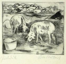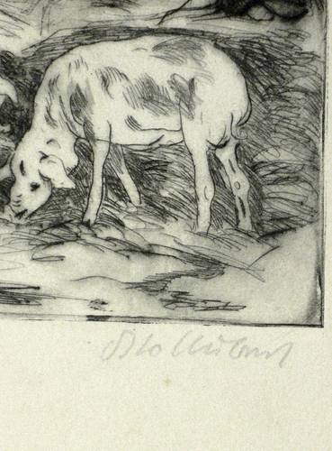 Um 1930. Radierung / Strichätzung & Kaltnadel, in Schwarz, mit Plattenton, auf hellem Velin. – Originale Künstlergrafik, von Otto Schubert. – Probedruck. – 9,6 x 11,5 cm (Darstellung / Platte), 36 x 25 cm (Blatt).