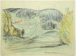 1910. Zeichnung / Pastellkreide. – Von Hans Schlegel. – 21,5 x 29,0 cm (Darstellung / Einfassungslinie), 30 x 42 cm (Trägerkarton).