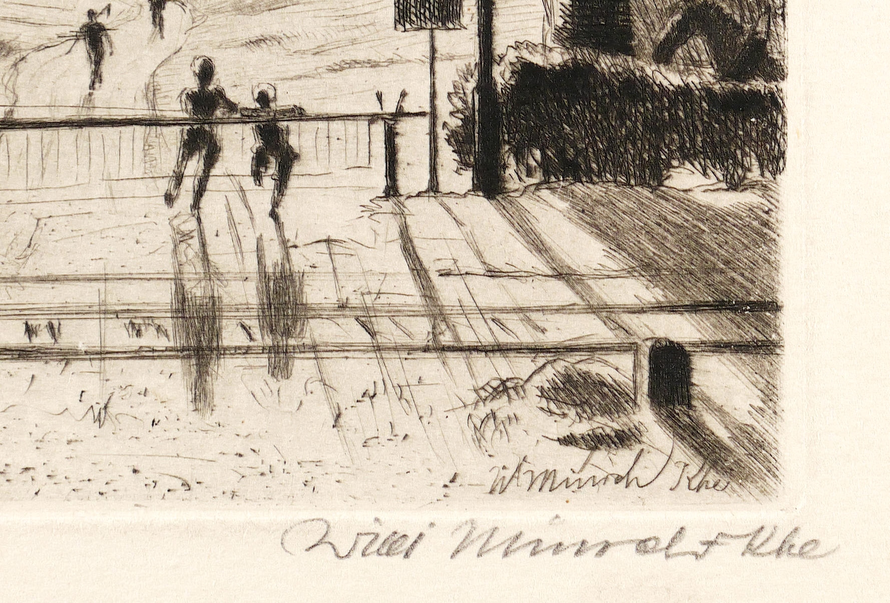 Rechts unten in Bleistift signiert. Links eigenhändig betitelt. In der Platte unten bezeichnet: ″Basel 18. Juli / W. Münch Khe″. Verso Stempel der Kunstdruckerei Künstlerbund Karlsruhe (KKK) mit handschriftlicher Katalognummer ″143″. – Sehr gut erhaltenes Exemplar.