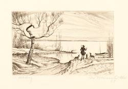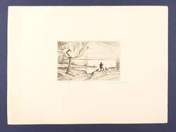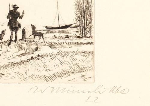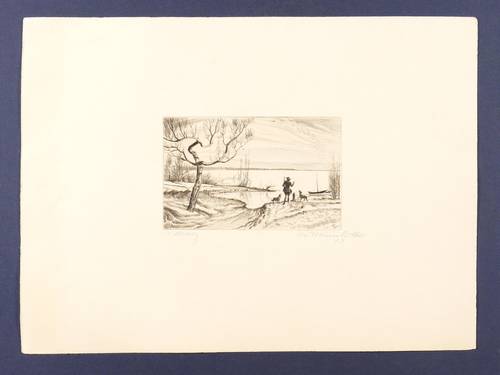 1922. Radierung / Kaltnadel, in Schwarz, auf glattem gelblichem Büttenkarton. – Originale Künstlergrafik, von Willi Münch-Khe. – 9,9 x 15,7 cm (Darstellung / Platte), 30 x 40 cm (Blatt).