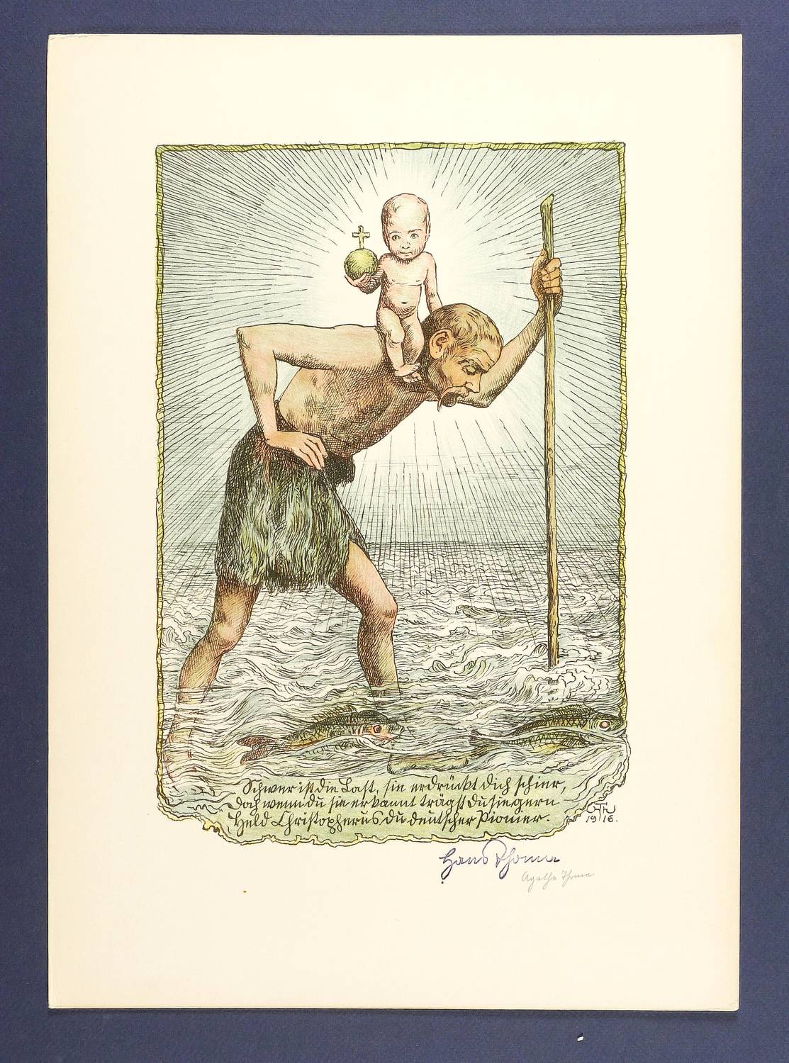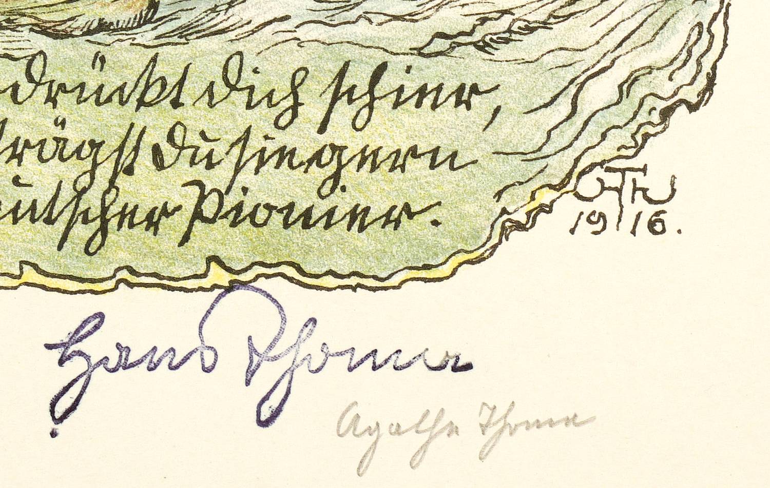 Im Stein rechts unten monogrammiert und datiert: "HTh 1916". Darunter Stempelsignatur und handschriftliche Signatur in Bleistift von der Schwester Agathe Thoma. Verso Stempel der Kunstdruckerei Künstlerbund Karlsruhe (KKK) mit handschriftlicher Katalognummer "47". – Geringfügig bestoßene Ecken. Sonst sehr guter Zustand.