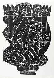 1965. Holzschnitt, in Schwarz, auf hellchamois Maschinenbütten. – Originale Künstlergrafik, von HAP Grieshaber. – 35 x 24 cm (Blatt), 31,5 x 21,3 cm (Darstellung / Druckbild).