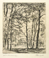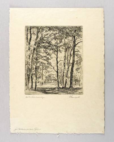 Um 1910. Radierung / Strichätzung, in Schwarz, mit Plattenton, auf wolkigem gelbem Velin. – Originale Künstlergrafik, von Fritz von Hellingrath. – 17,9 x 15,1 cm (Darstellung / Platte), 33 x 25 cm (Blatt).