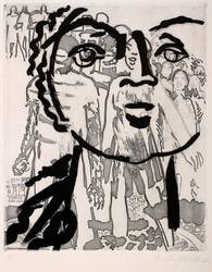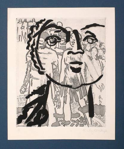 1972. Radierung / Aquatinta & Reservage, in Schwarz, auf hellchamois Velin. – Originale Künstlergrafik, von Eva-Maria Schreiter. – Auflage Exemplar Nr. 3. – 32,4 x 26,4 cm (Darstellung / Platte), 50 x 38 cm (Blatt).