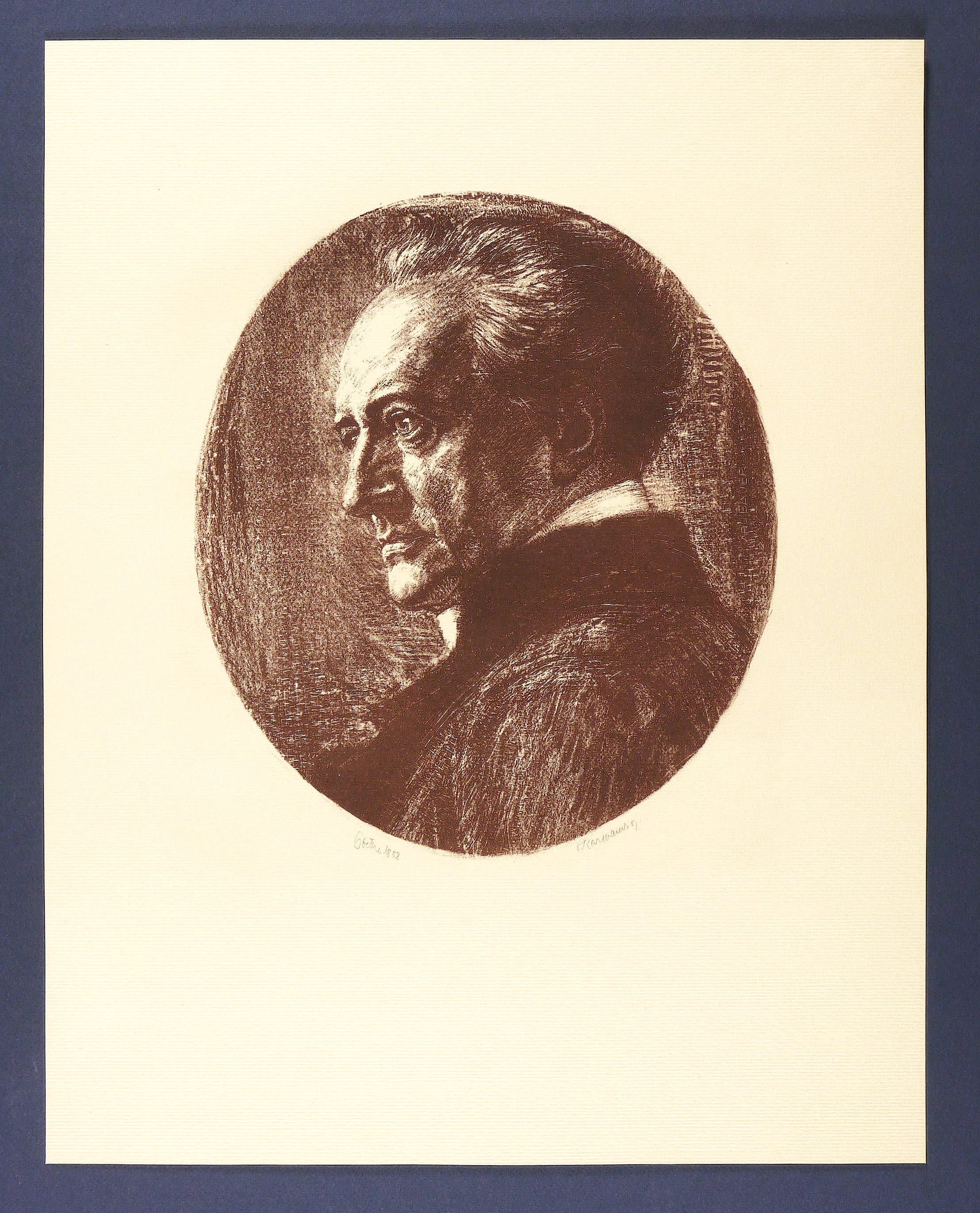 Links unten in Bleistift signiert und datiert: ″Karl Bauer gez.″ Rechts Titel: ″Goethe 1808.″ Im Stein zusätzliche Ritzsignatur am rechten Rand des Medaillon. – Tadellos. Sehr gut erhalten.