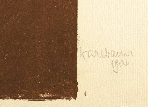 1904. Lithografie / Kreidelithografie, partiell geschabt, in Braun, auf Kupferdruckbütten. – Originale Künstlergrafik, von Karl Bauer. – 46,6 x 49,4 cm (Darstellung / Druckbild), 48 x 64,5 cm (Blatt).