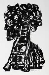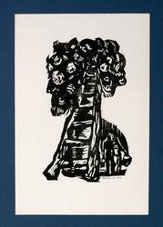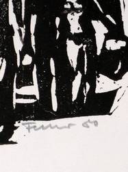 1980. Linolschnitt, in Schwarz, auf hellchamois Velin. – Originale Künstlergrafik, von Ernst Fechter. – 19,5 x 12,5 cm (Darstellung), 26 x 18 cm (Blatt).