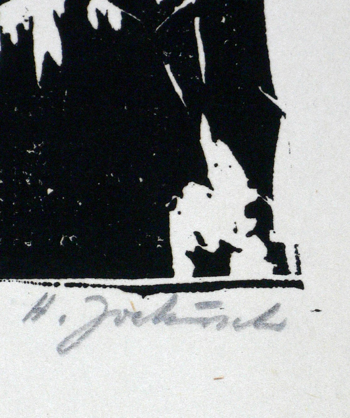 Um 1970. Holzschnitt, in Schwarz, auf weißlichem Velin. – Originale Künstlergrafik, von Horst Jockusch. – 19,0 x 11,0 cm (Darstellung / Druckstock), 28 x 20 cm (Blatt).