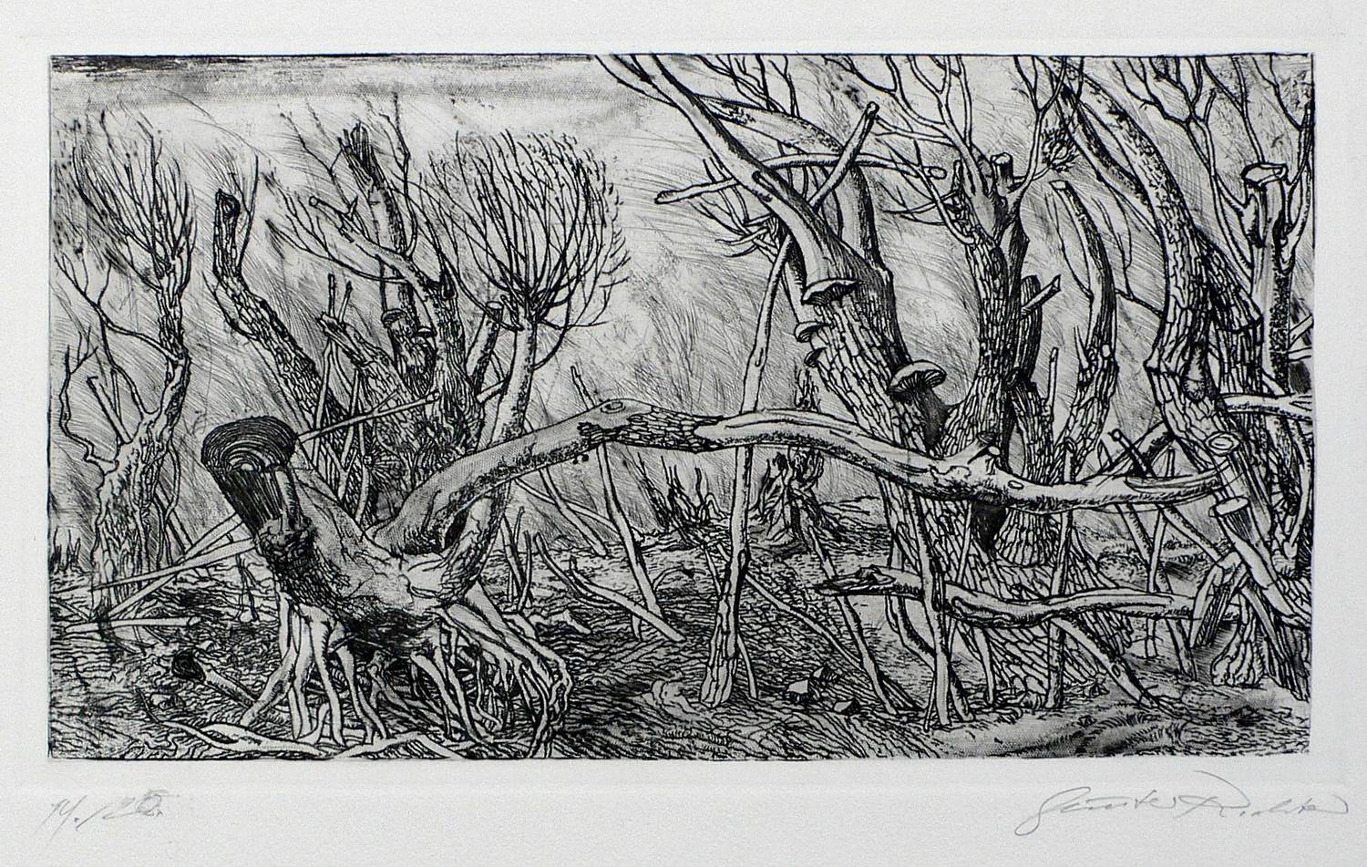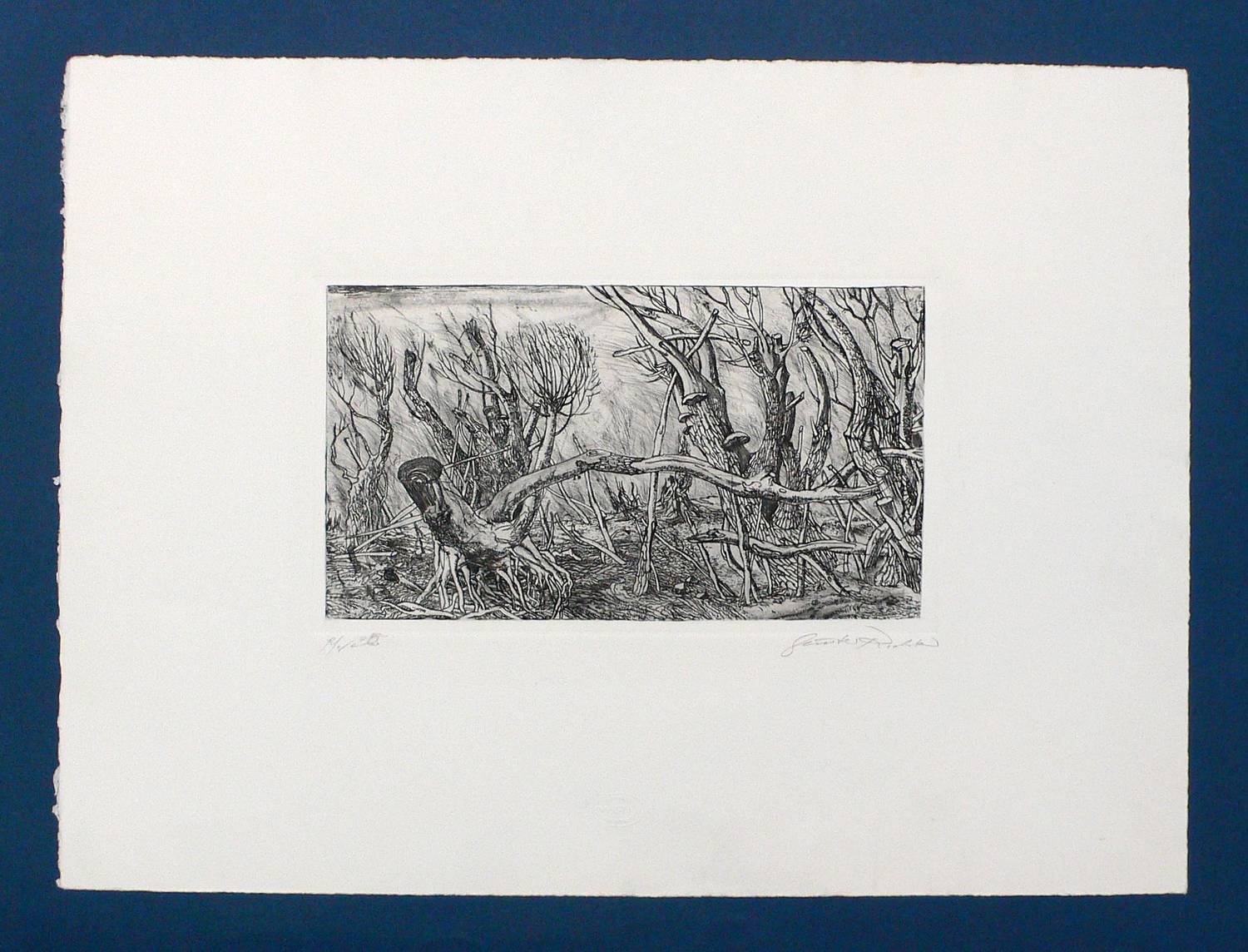 Um 1970. Radierung / Strichätzung & Roulette, in Schwarz, auf Velin. – Originale Künstlergrafik, von Günter Richter. – Auflage Exemplar Nr. 14/20. – 15,5 x 28,0 cm (Darstellung / Druckbild), 16,6 x 29,0 cm (Platte), 39 x 53 cm (Blatt).