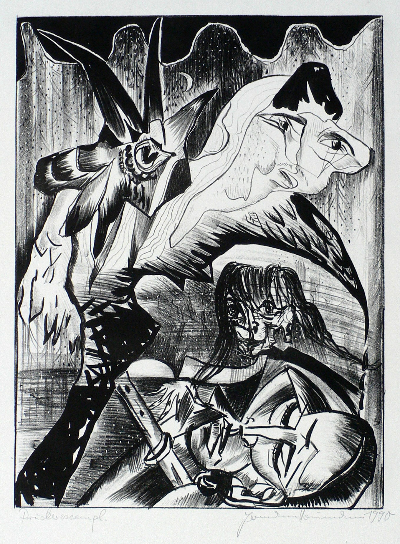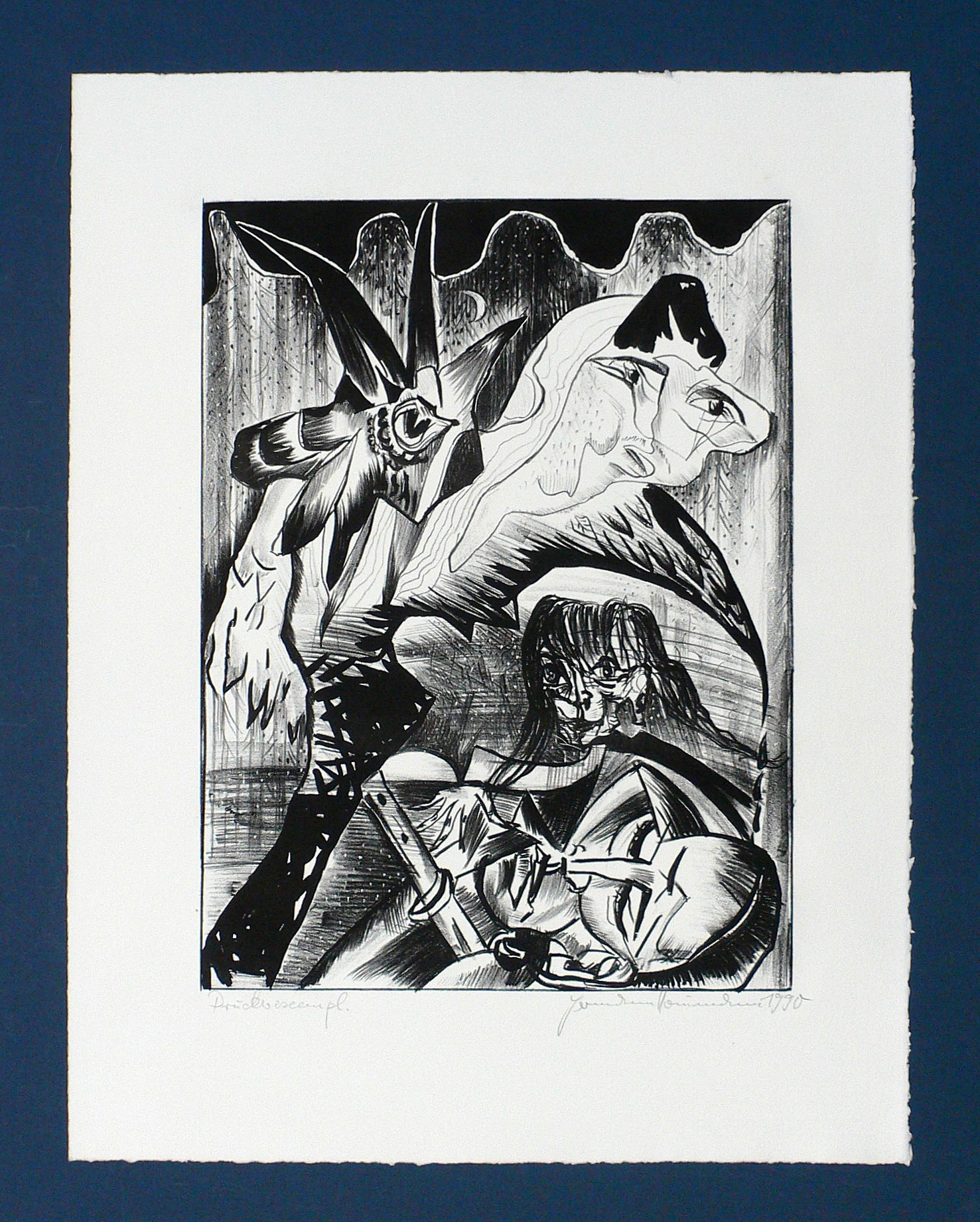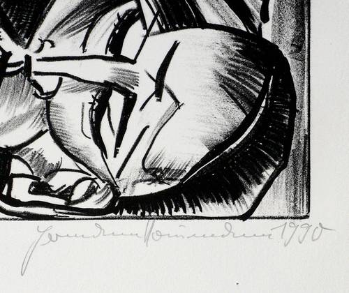 Außerhalb der Darstellung rechts unten in Bleistift signiert und datiert und links bezeichnet ″Druckerexemplar″. Am Blattrand rechts unten Wasserzeichen der Hahnemühle. – Tadelloses Exemplar.
