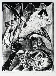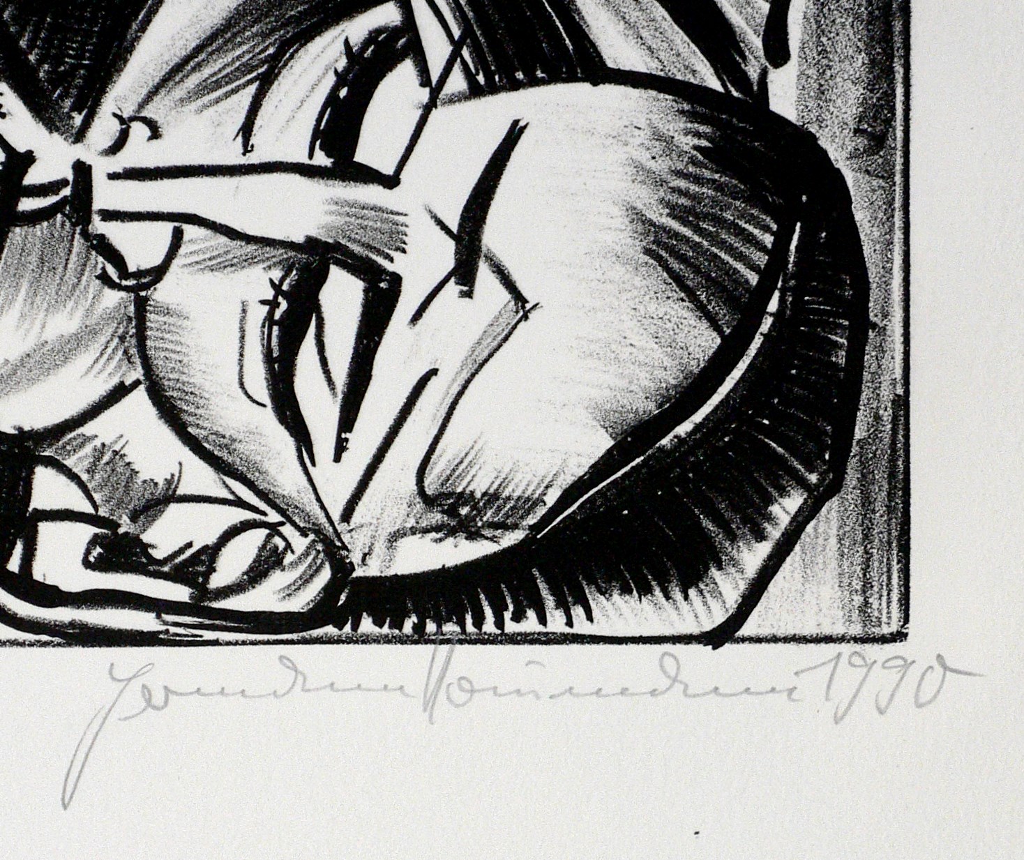 1990. Lithografie / Kreidelithografie, in Schwarz, auf Hahnemühle-Bütten. – Originale Künstlergrafik, von Hermann Naumann. – Druckerexemplar. – 47,5 x 35,0 cm (Darstellung), 65 x 50 cm (Blatt).