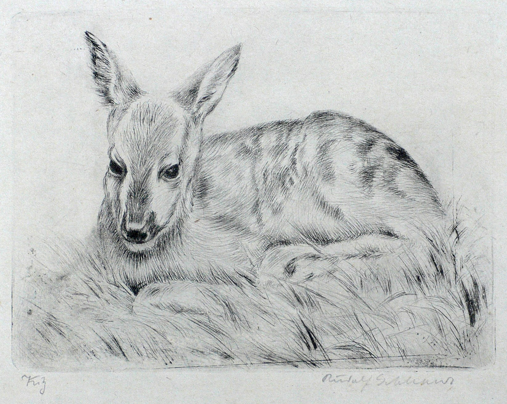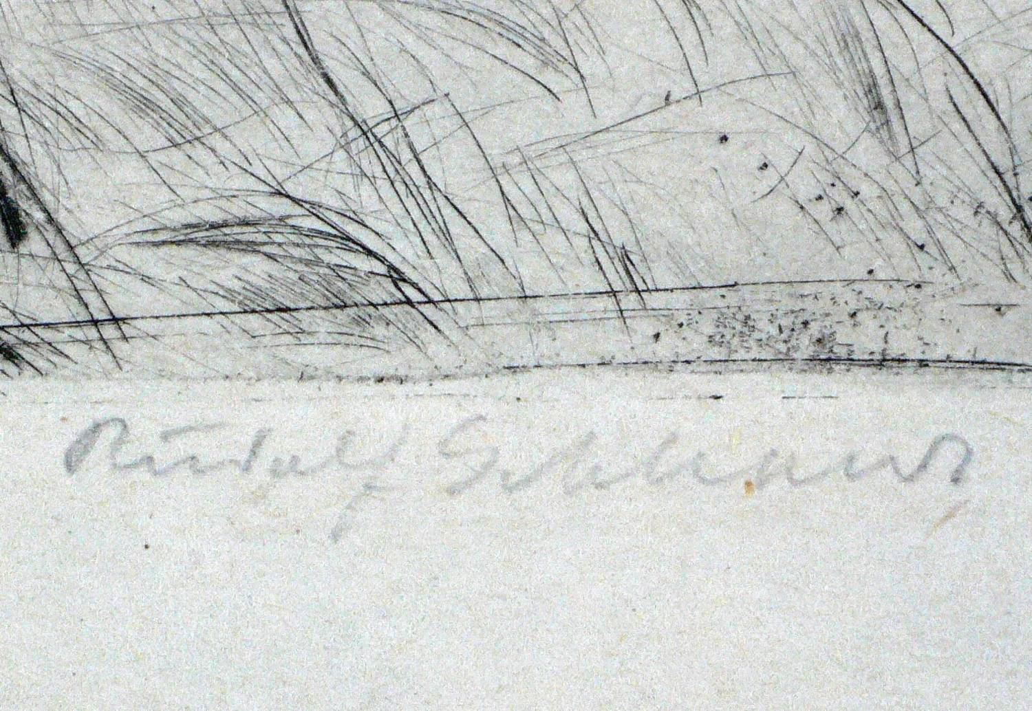 Um 1930. Radierung / Kaltnadel, in Schwarz, auf hellem Velin. – Originale Künstlergrafik, von Rudolf Gebhardt. – 13,4 x 17,7 cm (Darstellung / Platte), 20 x 21 cm (Blatt).