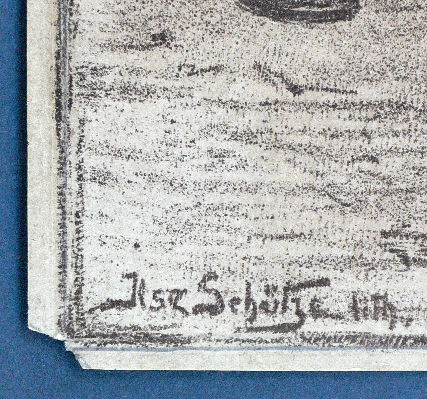 Im Stein links unten signiert und bezeichnet: ″Lith″. – PApier stark gebräunt. Bis an den Darstellungsbereich beschnitten. Mehrere Einrisse. Alle vier Ecken mit kleiner Fehlstelle. Mäßig guter bis mangehhafter Zustand.