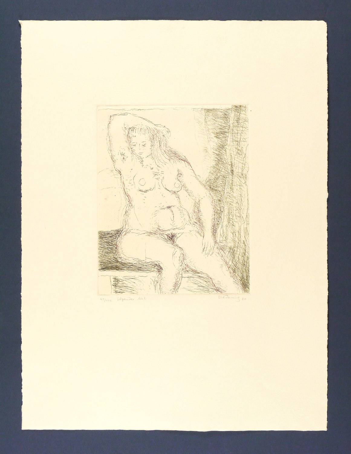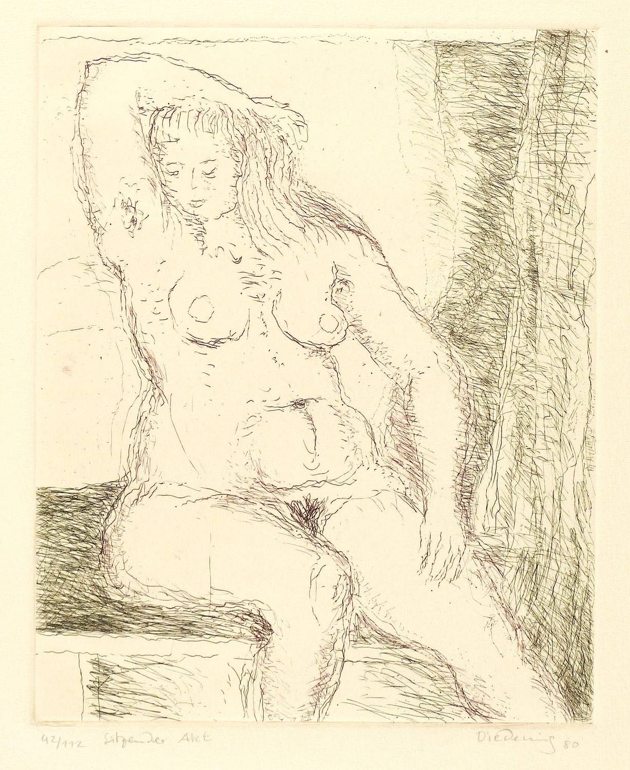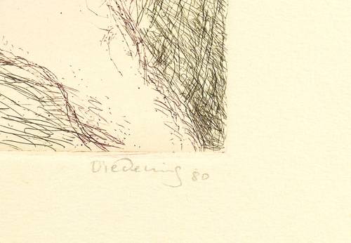 1980. Farbradierung / Strichätzung, in Rot, Schwarz & Grün, auf Hahnemühle-Bütten. – Von Fritz Diedering. – Auflage Exemplar Nr. 42/112. – 24,2 x 19,5 cm (Darstellung / Platte), 53 x 39,5 cm (Blatt).