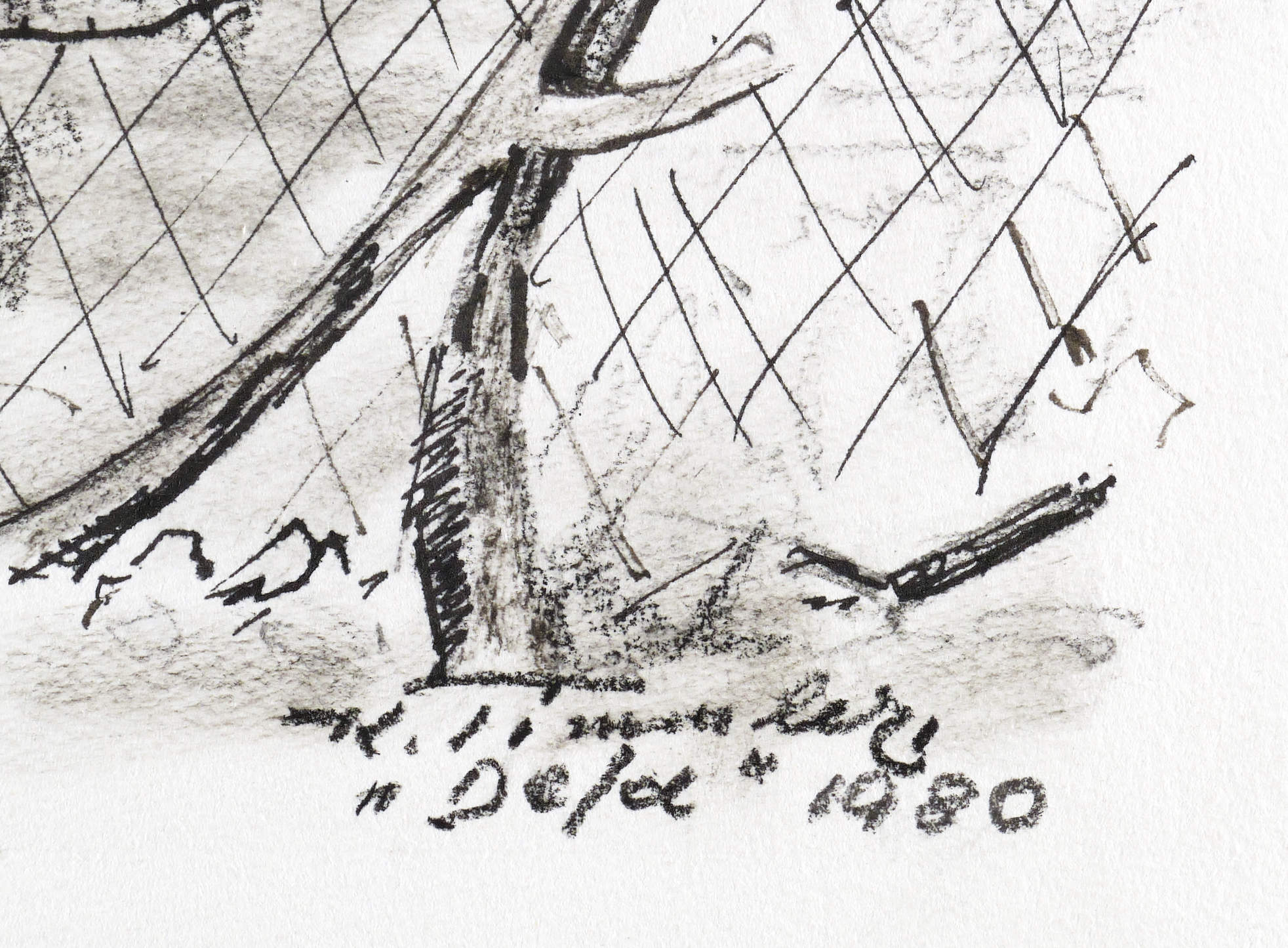 1980. Zeichnung / Feder- & Pinselzeichnung, in schwarzer Tusche, auf festem weißlichem Velin. – Originale Künstlergrafik, von Karl Timmler. – Unikat. – 32 x 40 cm (Blatt), 28,4 x 36,3 cm (Darstellung).