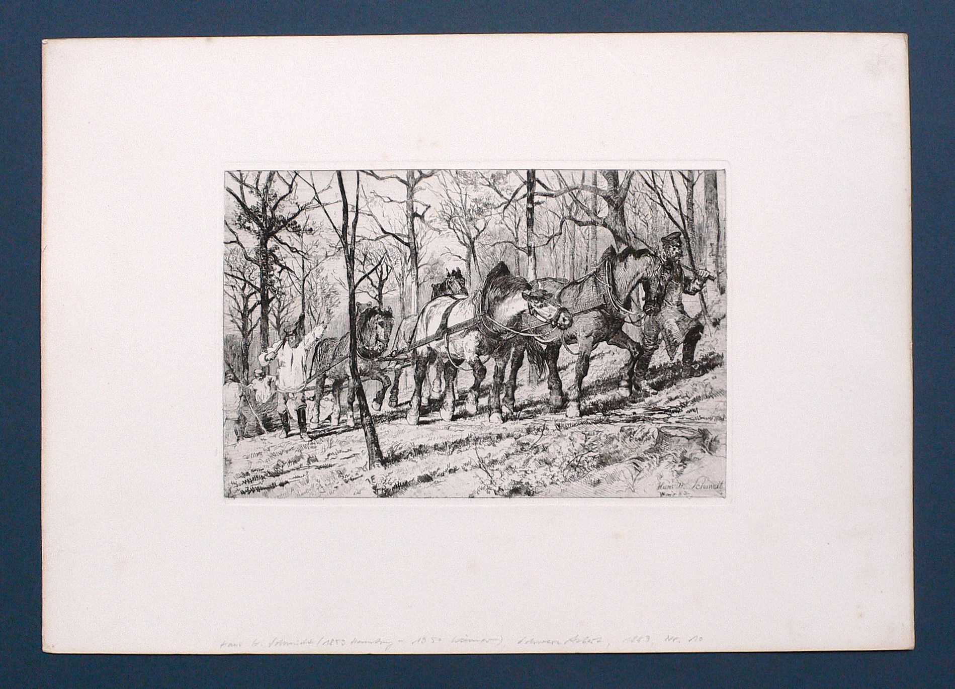 Hans Werner Schmidt (1859 Hamburg - 1950 Weimar). Deutscher Landschafts- und Tiermaler und Grafiker. Ab 1879 Studium an der Kunstschule Weimar. Meisterschüler bei Theodor Hagen und Albert Brendel. 1949 fand anläßlich seines 90. Geburtstags eine Sonderausstellung in der Alt-Weimarer Buch- und Kunststube Schaller statt.