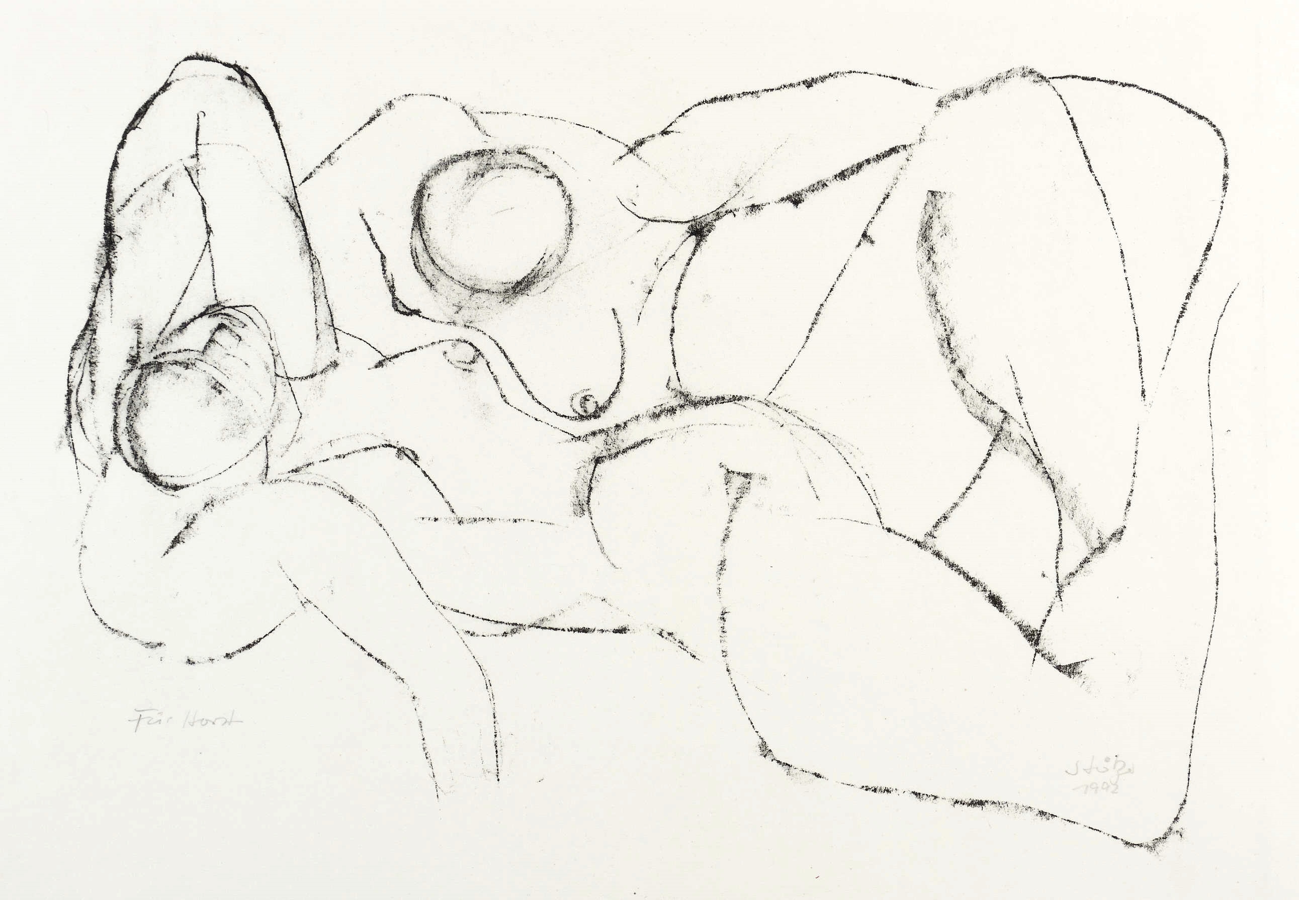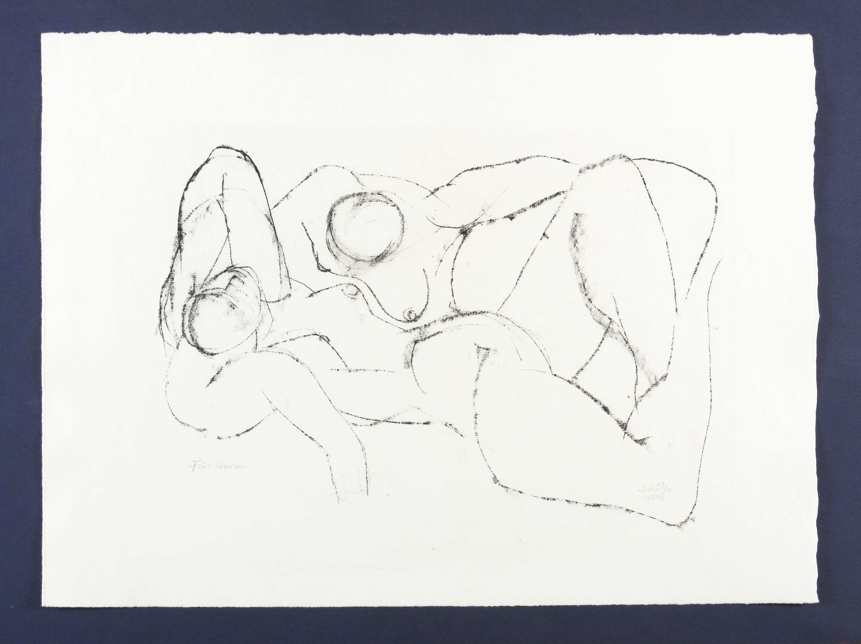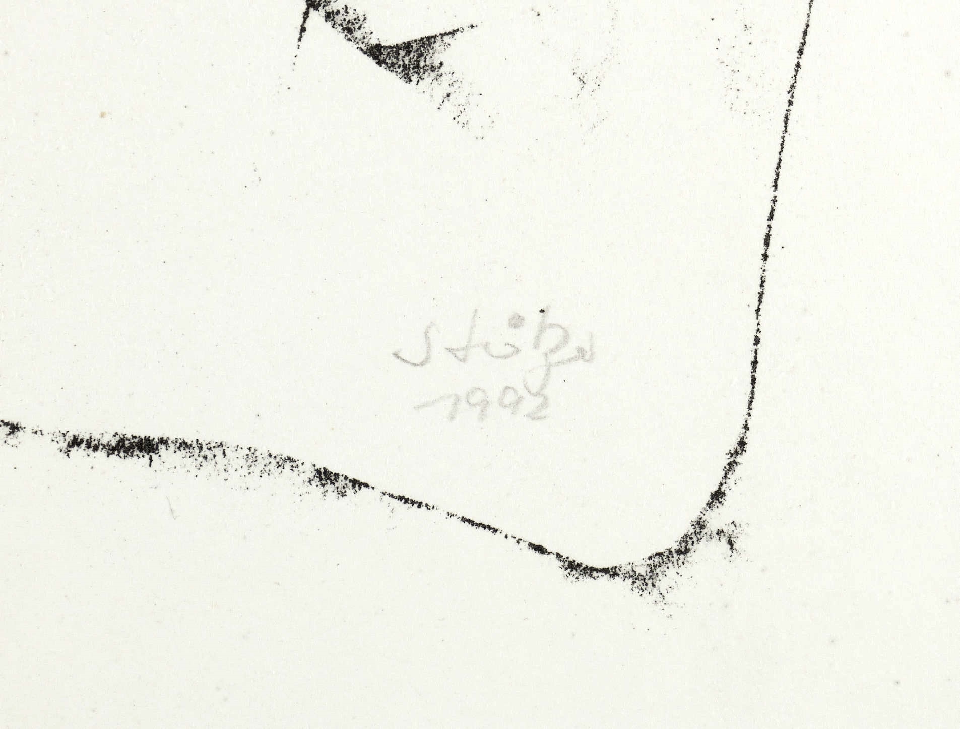 1992. Lithografie / Kreidelithografie, in Schwarz, auf schwerem hellchamois Hahnemühle-Bütten. – Originale Künstlergrafik, von Werner Stötzer. – Druckerexemplar. – 26,6 x 39,5 cm (Darstellung / Druckbild), 40 x 54 cm (Blatt).