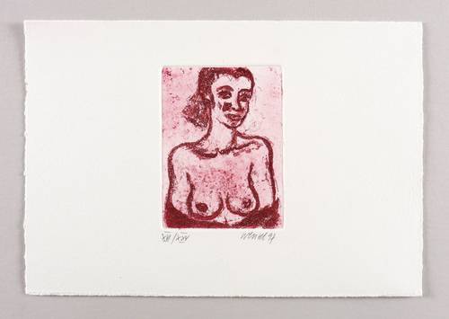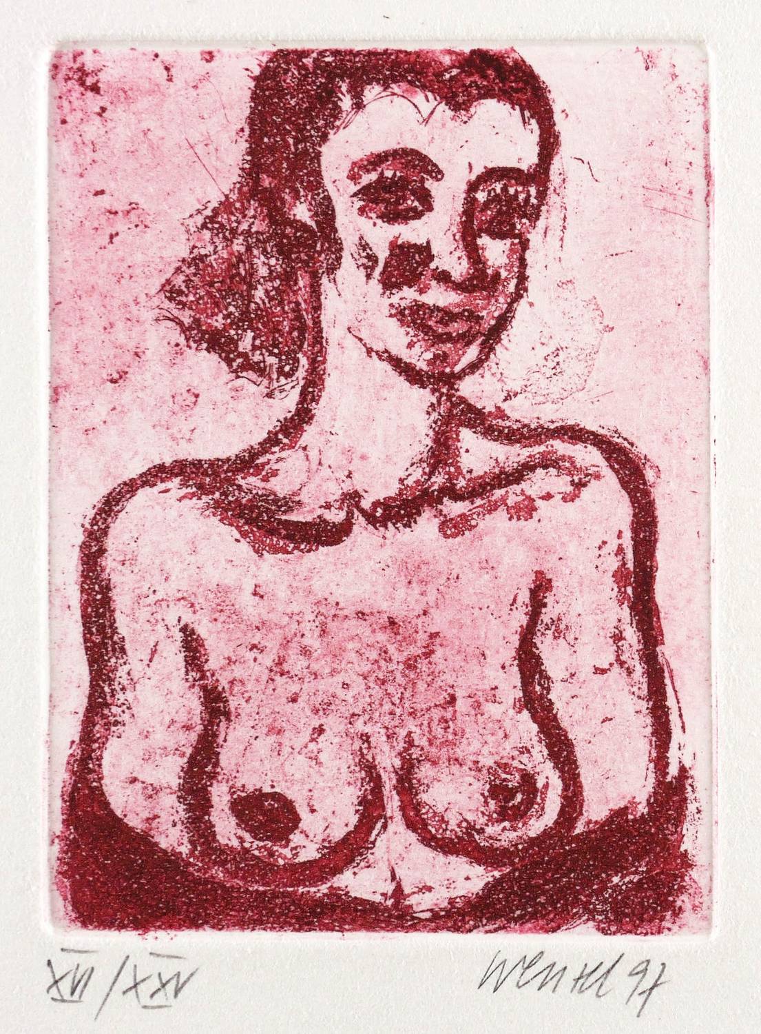 Wenzel, Jürgen. – „Weiblicher Halbakt in Rot”.