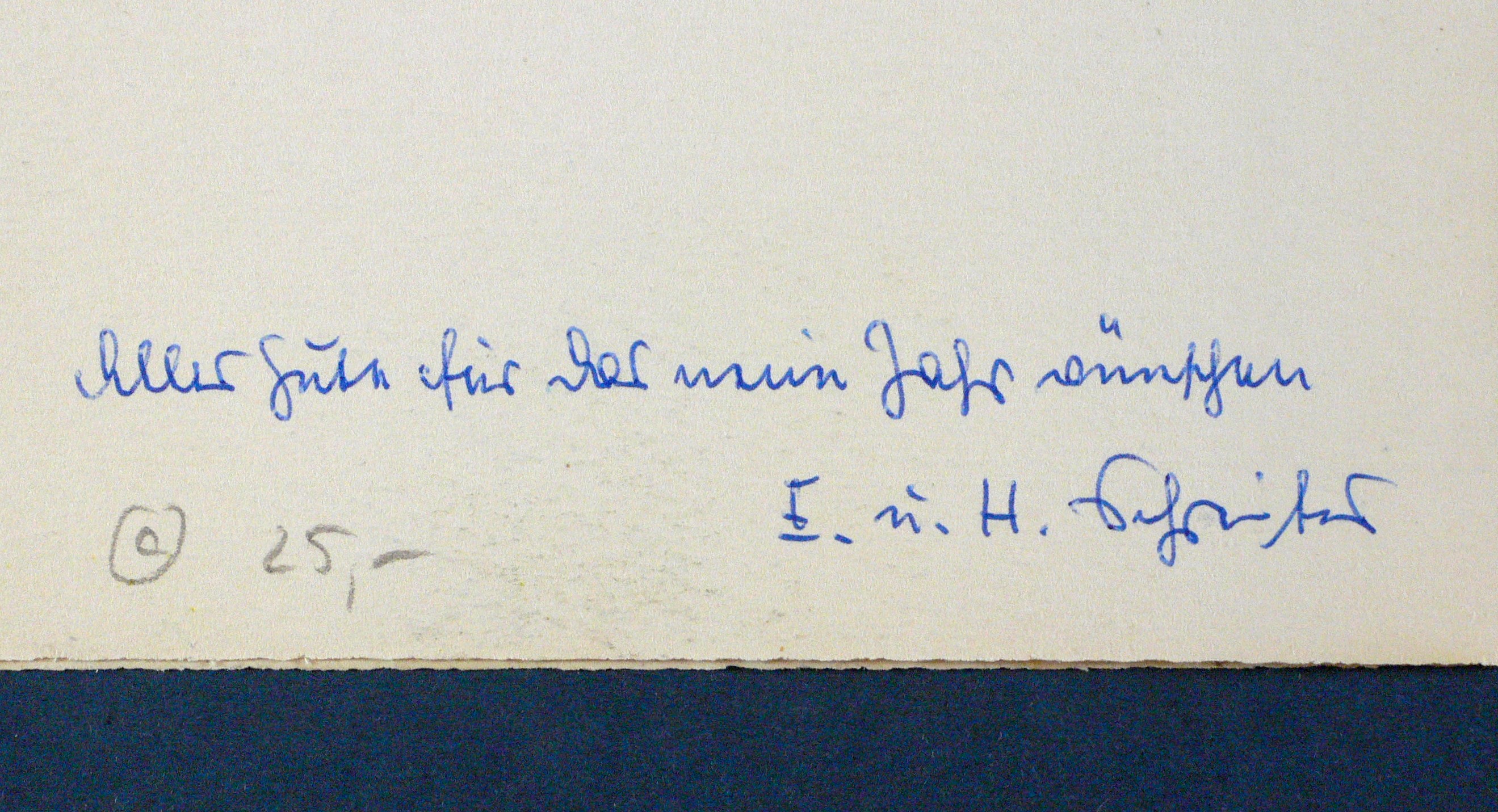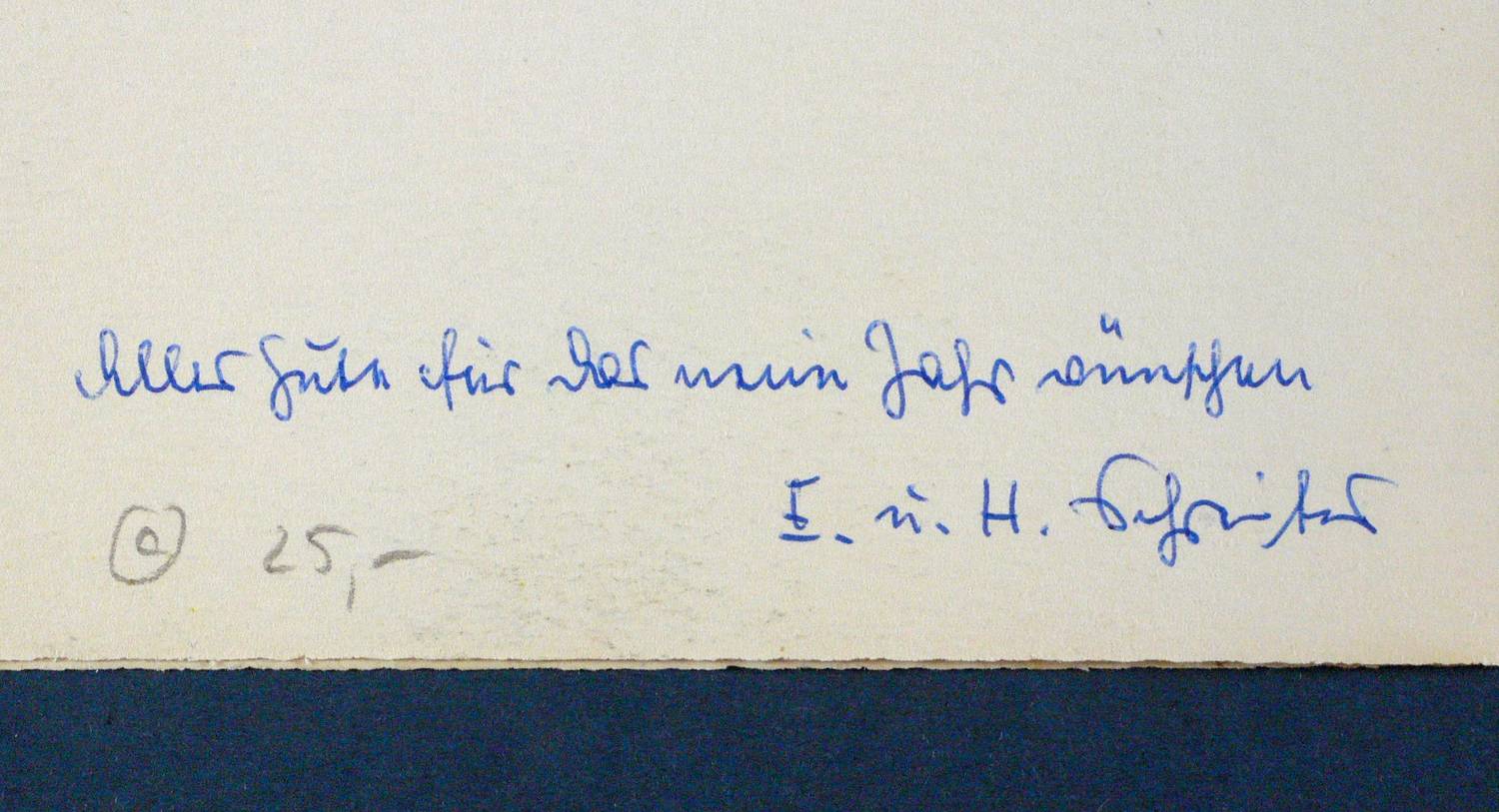 Verso in blauem Kugelschreiber signiert und mit Widmung versehen: ″Alles Gute für das neue Jahr wünschen E. und H. Schreiter″. – Typisches Blatt. – Verso leicht atelierspurig. Sonst gut erhalten.