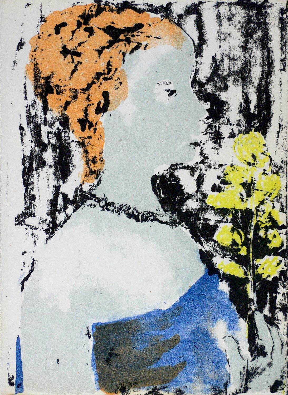Um 1975. Farblithografie / Kreide- & Pinsellithografie, in 4 Farben, auf hellem Velin. – Originale Künstlergrafik, von Elly Schreiter. – 21,0 x 15,0 cm (Darstellung / Einfassungslinie).