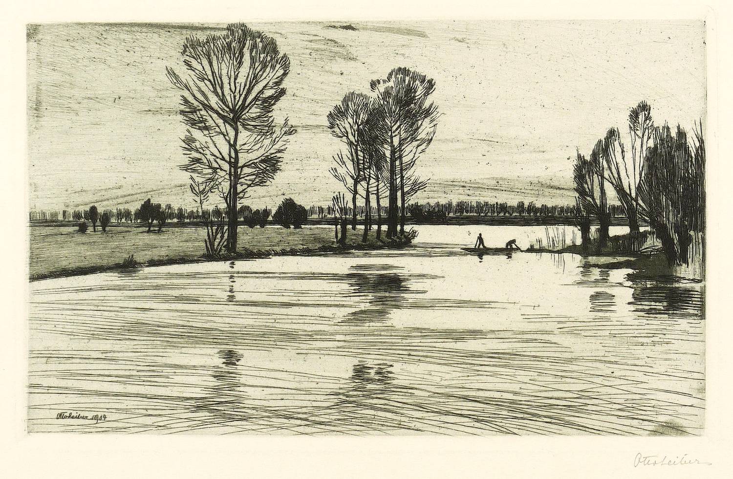 1904. Radierung / Kaltnadel, mit Plattenton, in Blauschwarz, auf Kupferdruckkarton. – Originale Künstlergrafik, von Otto Leiber. – 14,8 x 24,0 cm (Darstellung), 15,7 x 25,0 cm (Platte), 31 x 43 cm (Blatt).