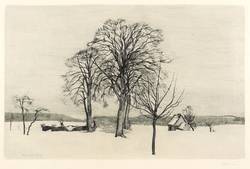 1909. Radierung / Strichätzung & Kaltnadel, mit Plattenton, in Blauschwarz, auf Kupferdruckkarton. – Originale Künstlergrafik, von Otto Leiber. – 28,1 x 43,3 cm (Darstellung), 39 x 55 cm (Blatt).