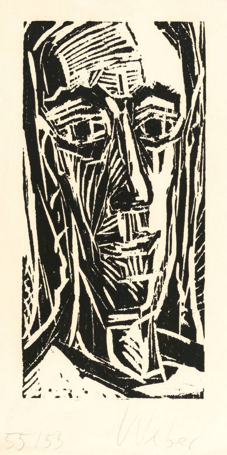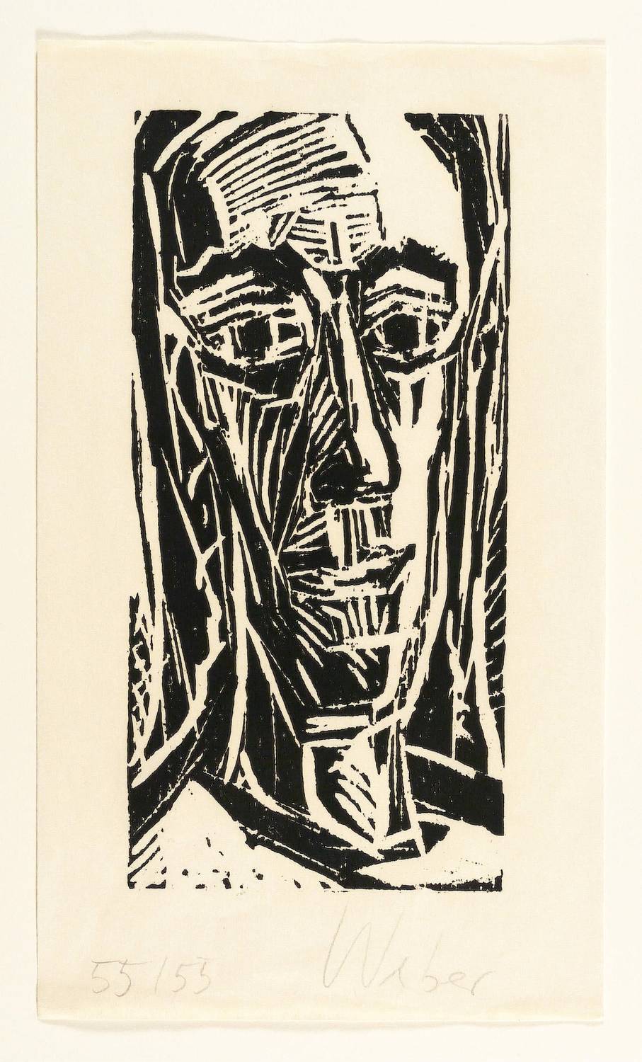1983. Holzschnitt, in Schwarz, auf Japanbütten. – Originale Künstlergrafik, von Horst Weber. – Auflage Exemplar Nr. 55/55. – 24,7 x 12,0 cm (Darstellung / Druckstock), 31 x 18 cm (Blatt).