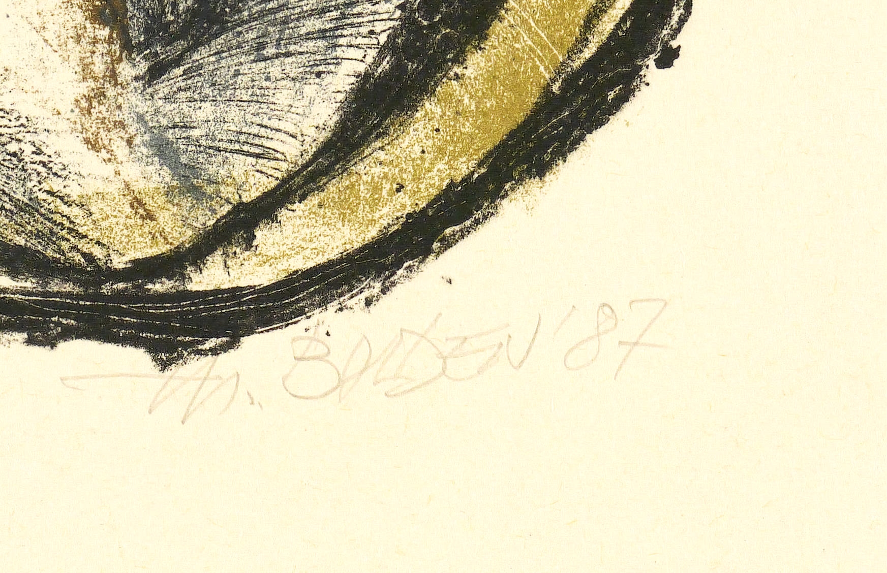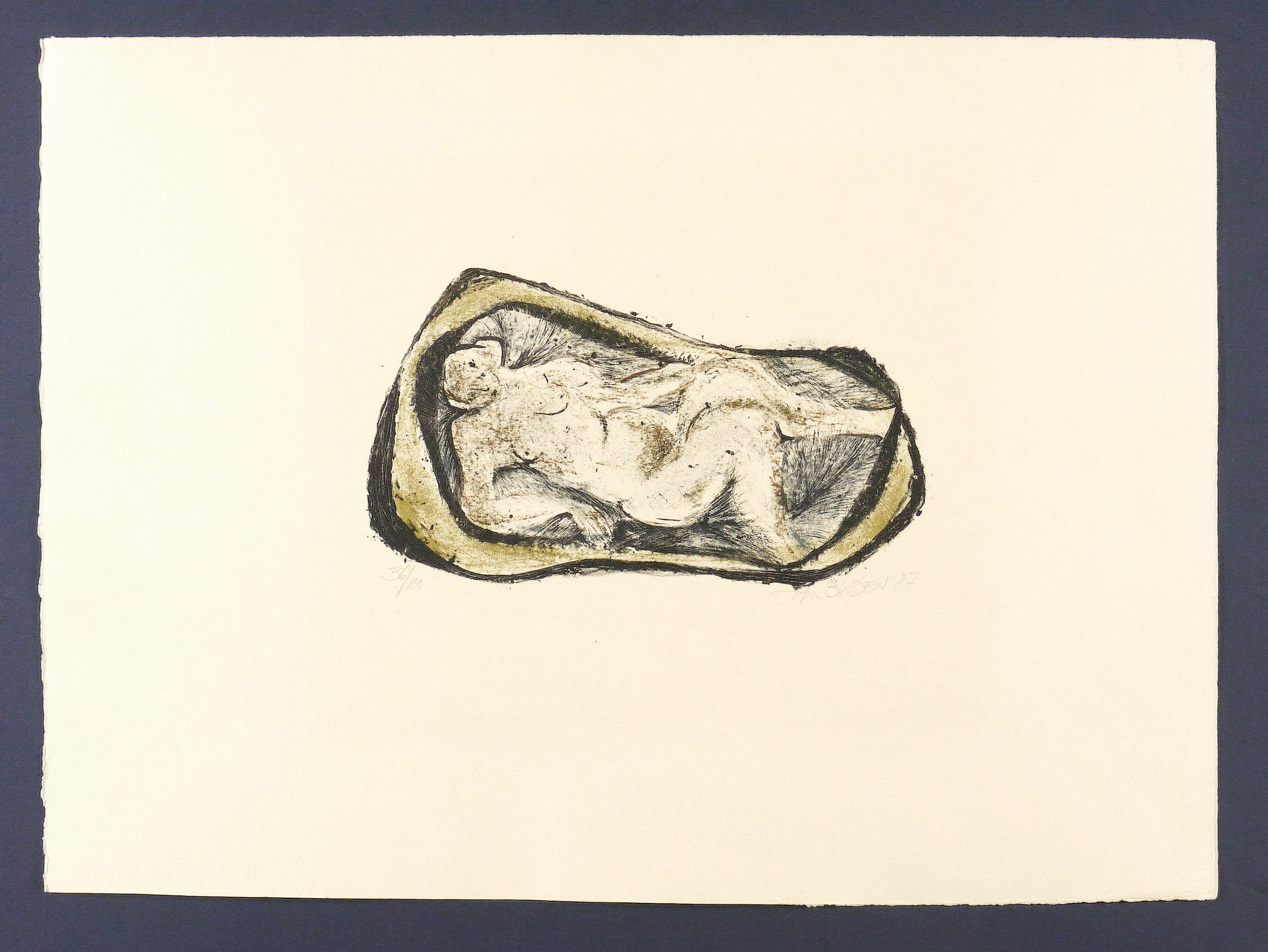 1987. Farblithografie / Kreidelithografie, in 3 Farben, auf Hahnemühle-Bütten. – Originale Künstlergrafik, von Theo Balden. – Auflage Exemplar Nr. 36/100. – 38,0 x 24,5 cm (Darstellung / Druckbild), 49,5 x 39,5 cm (Blatt).