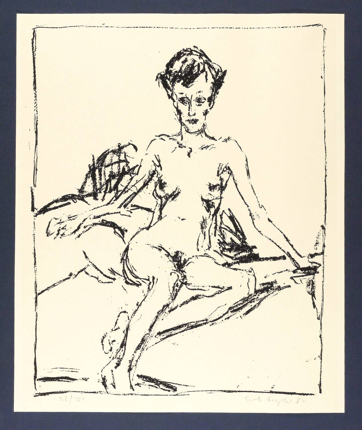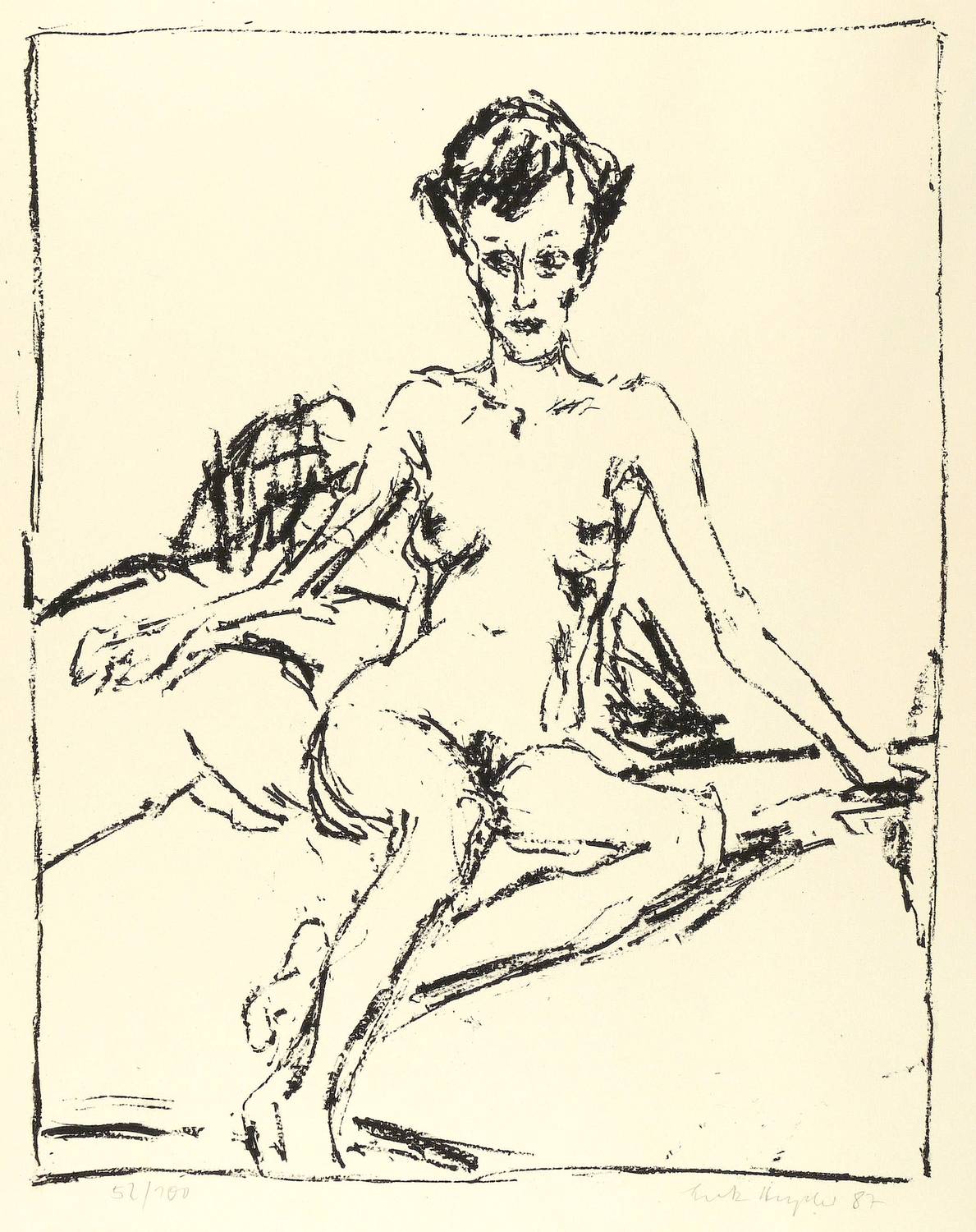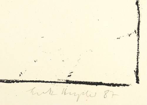 1987. Lithografie / Kreidelithografie, in Schwarz, auf hellchamois Karton. – Von Lutz Heyder. – Auflage Exemplar Nr. 52/100. – 46,5 x 37,0 cm (Darstellung / Druckbild), 50 x 41,5 cm (Blatt).