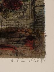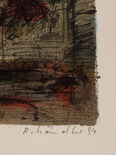 1994. Farbsiebdruck / Farbserigrafie, in 6 Farben, auf hellchamois Velinkarton. – Originale Künstlergrafik, von Rolf Händler. – Auflage Exemplar Nr. 98/400. – 27,0 x 29,0 cm (Darstellung), 43,5 x 34,5 cm (Blatt).