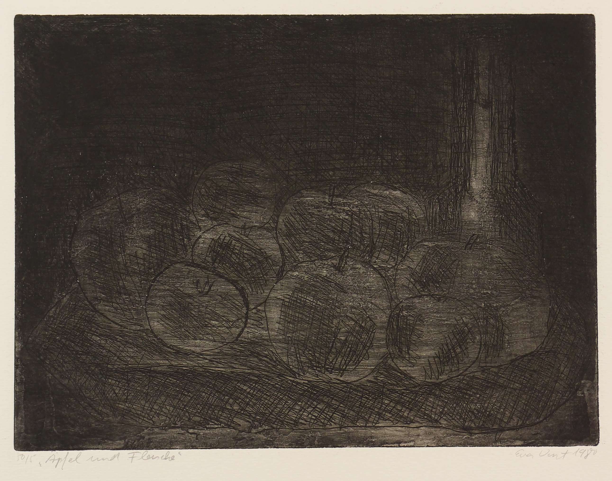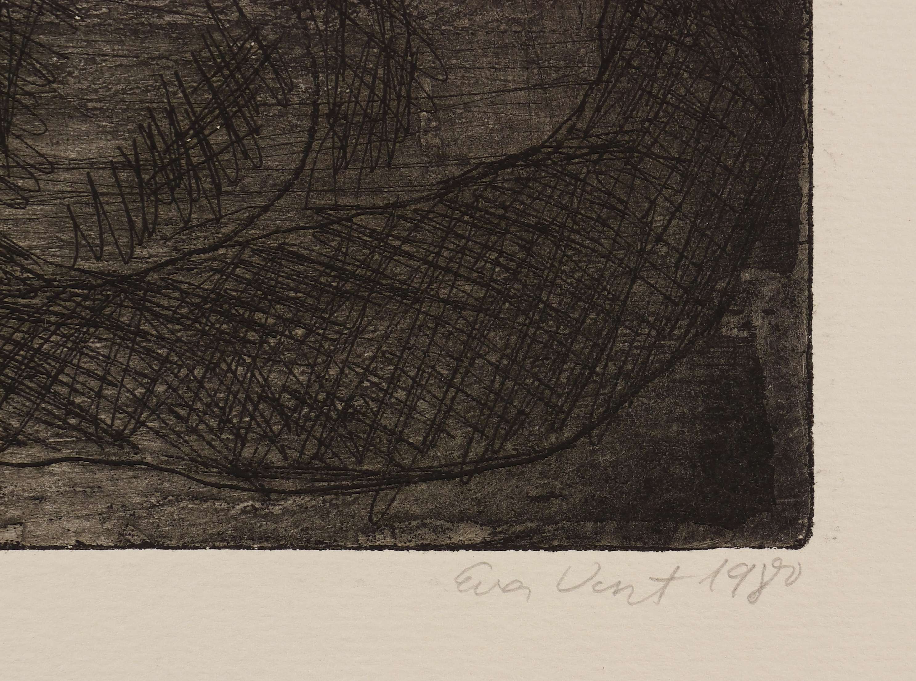1980. Radierung / Strichätzung & Aquatinta, in Schwarz, auf Velin. – Originale Künstlergrafik, von Eva Vent. – Auflage Exemplar Nr. 5/50. – 21,5 x 29,0 cm (Darstellung / Platte), 37,5 x 50 cm (Blatt).