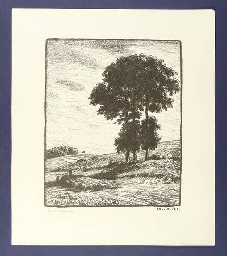 1915. Lithografie / Kreidelithografie, in Schwarz, auf glattem hellgelbem Karton. – Von Hans Richard von Volkmann. – 25,5 x 20,9 cm (Darstellung / Stein), 36 x 31 cm (Blatt).