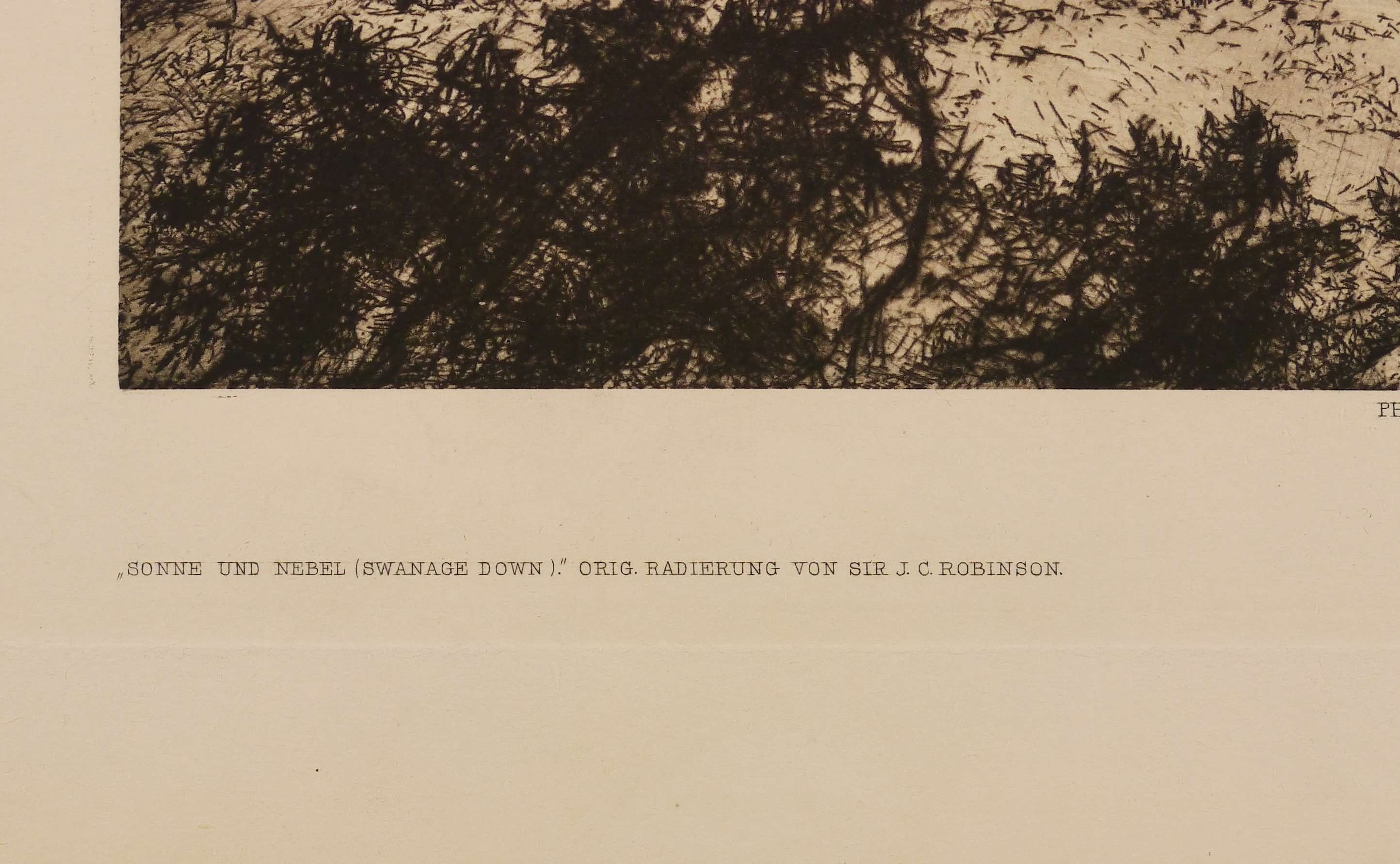 In der Platte unten mittig bezeichnet "PHOTOGRAVURE R. PAULUSSEN, WIEN", links unten betitelt und bezeichnet "ORIG. RADIERUNG VON SIR J. C. ROBINSON." Rechts die Adresse der Wiener Staatsdruckerei. – Papier am Blattrand stockfleckig, leicht gegilbt und mit teilweise restaurierten kleinen Einrissen. Noch guter bis mäßig guter Erhaltungszustand.