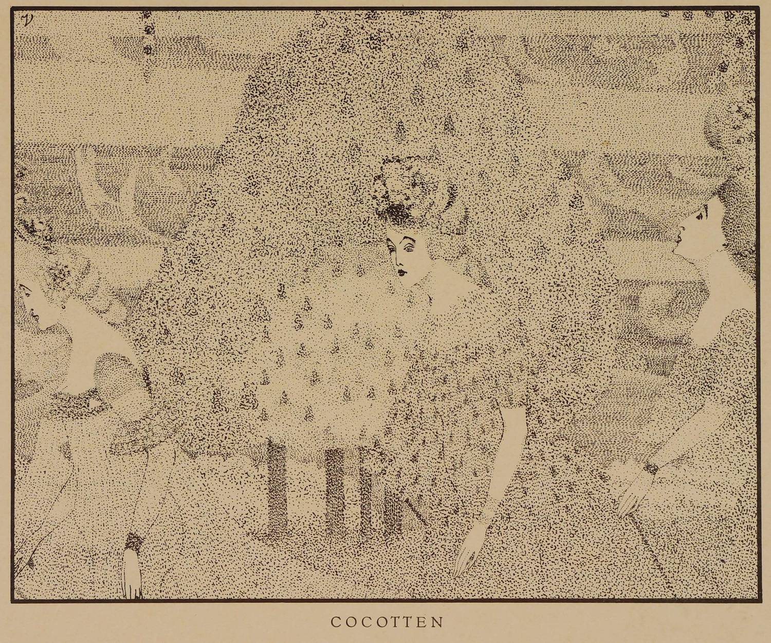 Aus: John Jack Vriesländer, Rose Mirliton. Zwanzig Zeichnungen (Kurt Wolff: 1914 ). – Nicht handsigniert. Im Stein in der Darstellung links oben Künstlermonogramm. Unten mittig betitelt. – Papier etwas gegilbt und minimal knickspurig. Guter Erhaltungszustand.