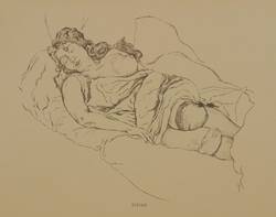 Aus: John Jack Vriesländer, Schlafende Frauen (Leipzig: Kurt Wolff 1914). – Nicht handsigniert. Im Stein rechts unten monogrammiert und unten mittig betitelt. – Papier gegilbt. Oberer Blattrand etwas knickspurig mit winzigem Einriß. Guter Erhaltungszustand.